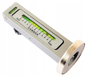 Прибор измеряет угол развала ступицы колеса или тормозного диска и позволяет выполнять регулировки для поддержания правильного сход-развала колес и, следовательно, равномерного износа шин. Полезный инструмент для поддержания правильной настройки развала после разборки и сборки подвески.