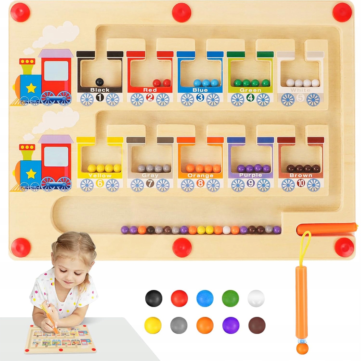 МАГНИТНЫЙ ДЕРЕВЯННЫЙ ЛАБИРИНТ МОНТЕССОРИ, ИЗУЧАЮЩИЙ ЦВЕТА И СЧИТАЮЩИЙ ПОЕЗД