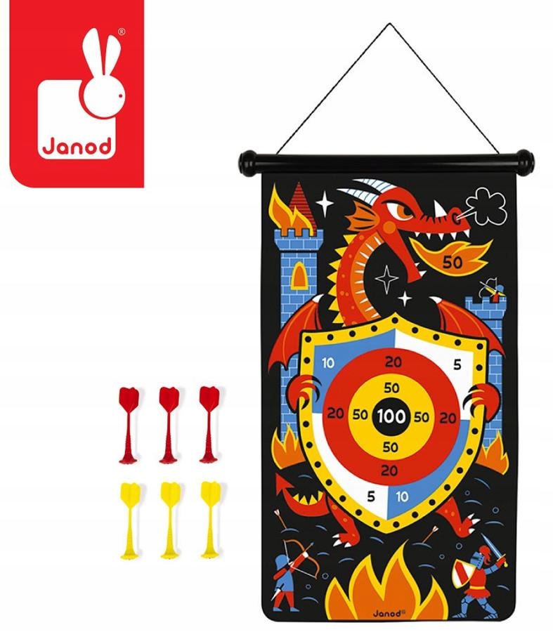 Магнитные дротики — первая игра на ловкость и умение Для маленьких детей и больших. Красивые цвета и рисунки с мотивами огнедышащих драконов и нападающих на них рыцарей и замков значительно повышают привлекательность игрушки. Дартс сделан красиво, но ВНИМАНИЕ - попасть в цель не так-то просто!