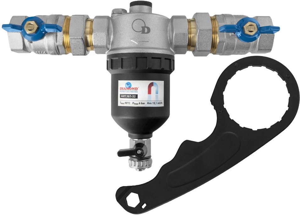 Он оснащен неодимовым магнитом мощностью 9000 Гаусс, который улавливает все металлические, ферромагнитные и другие примеси, образующиеся в установке. Предназначен для систем отопления и охлаждения.