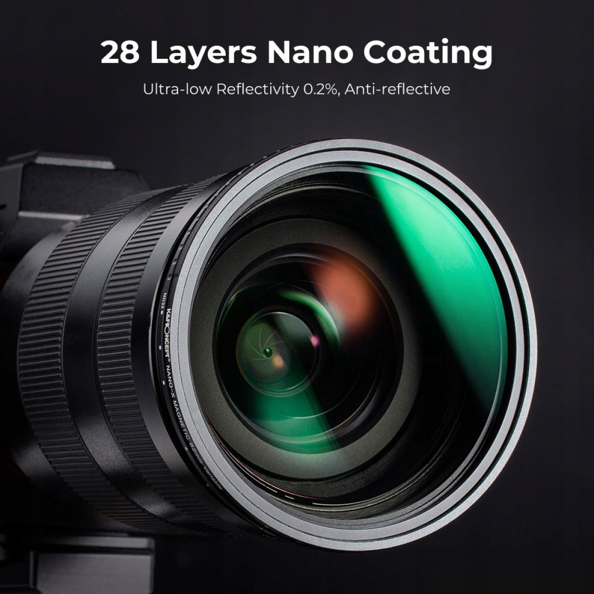 Кольцо между ND2-32, регулируемое в диапазоне восстановления от 1 до 5 графиков диафрагмы. - 28-слоянная технология покрытия значительно значительно снижает отражение и виды линзы и в то же время делает фильтр , устойчивый к пыли, пыли, пыли, пыли, пыли, пыли и гидрофоб. Помощь фильтра уменьшить vignetting на широкоугольных линзах