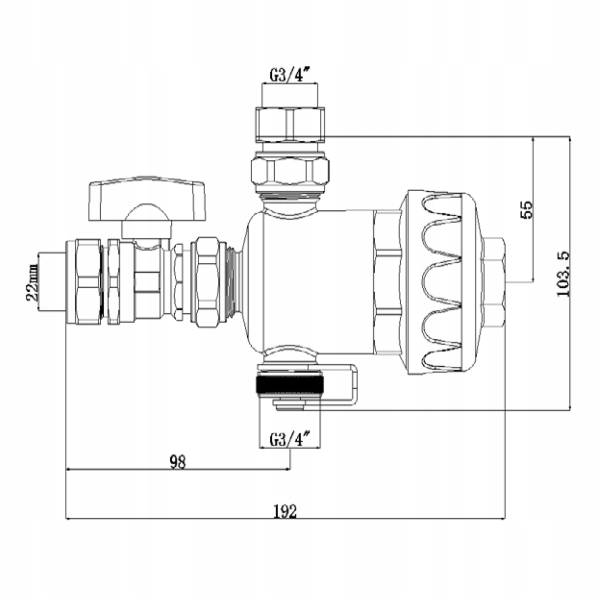 - Соединение: 22 мм x 3/4(см. рисунок ниже)