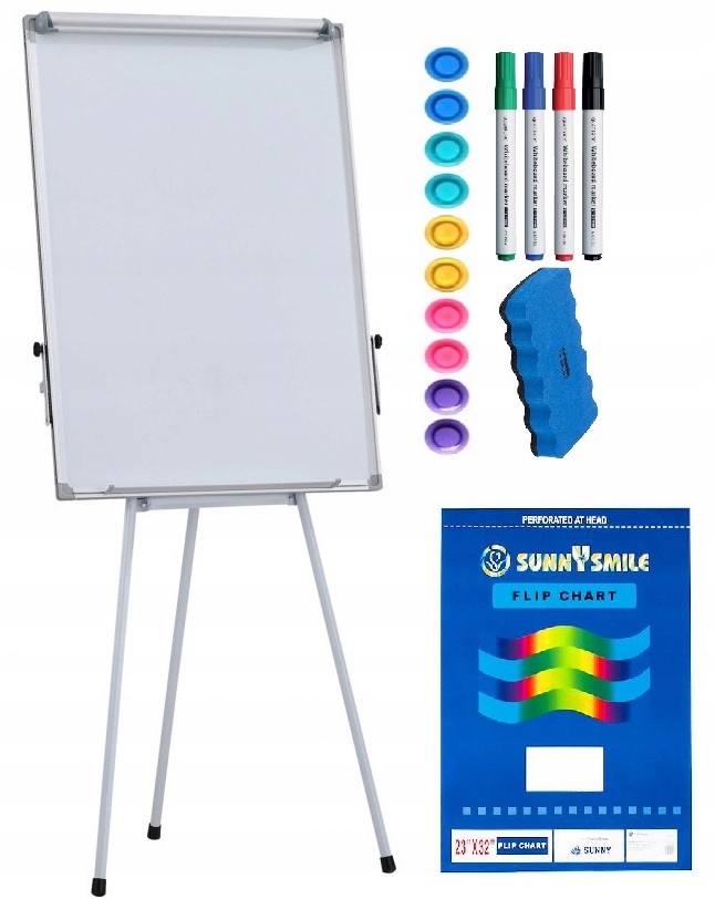 Магнитный флипчарт на штативе. Магнитная доска 70х100 + БУМАГА 25 карточек.