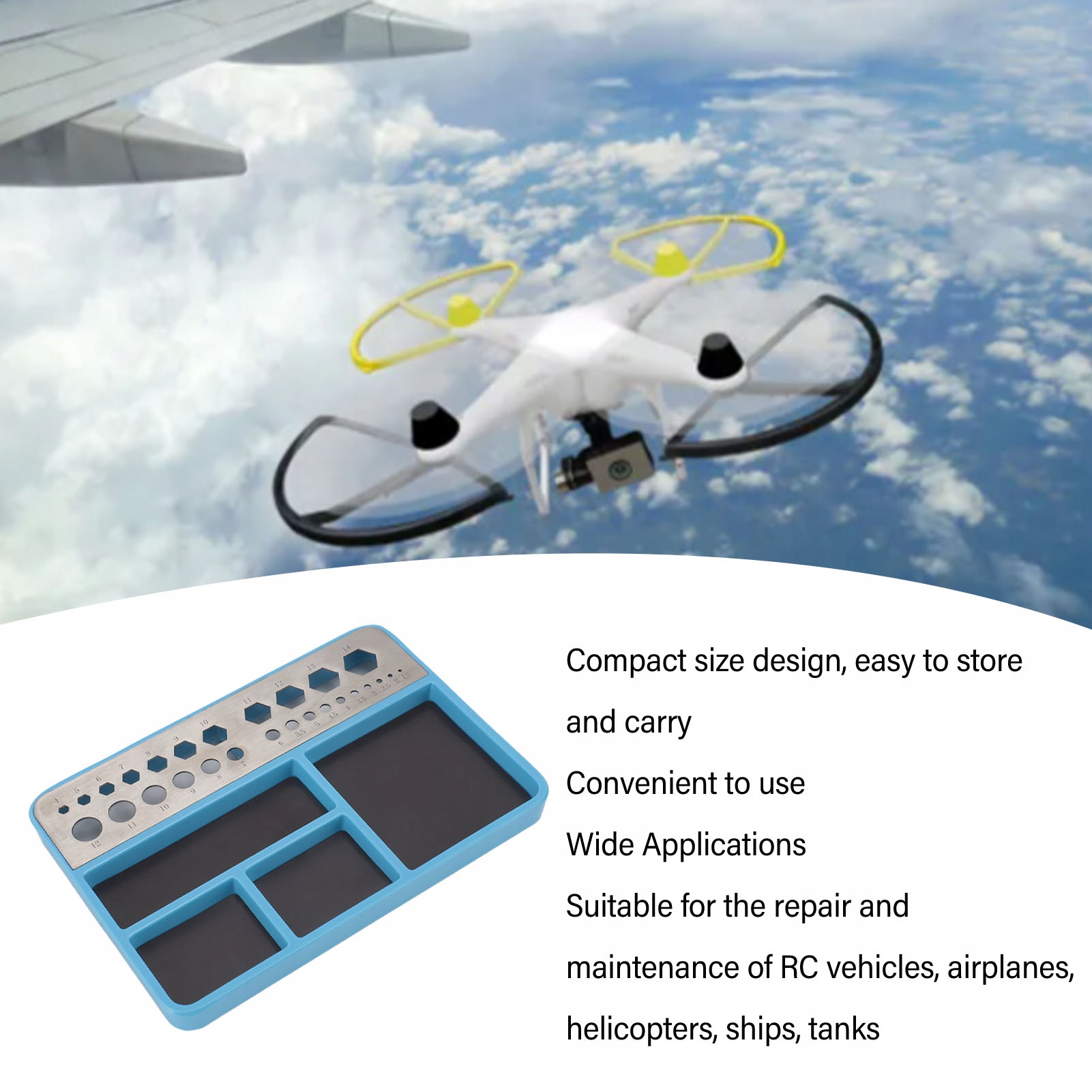 1. Магнитный: лоток для ремонта RC имеет магнитную первичную площадку для предотвращения потери винтов и небольших аксессуаров, что позволяет легко организовать необходимые детали и небольшие инструменты.