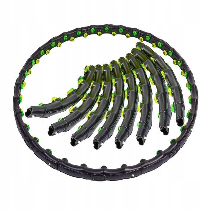 Обруч состоит из 8 идеально сочетающихся друг с другом элементов, соединенных простой и надежной застежкой, которая предотвращает его расстегивание во время тренировки.