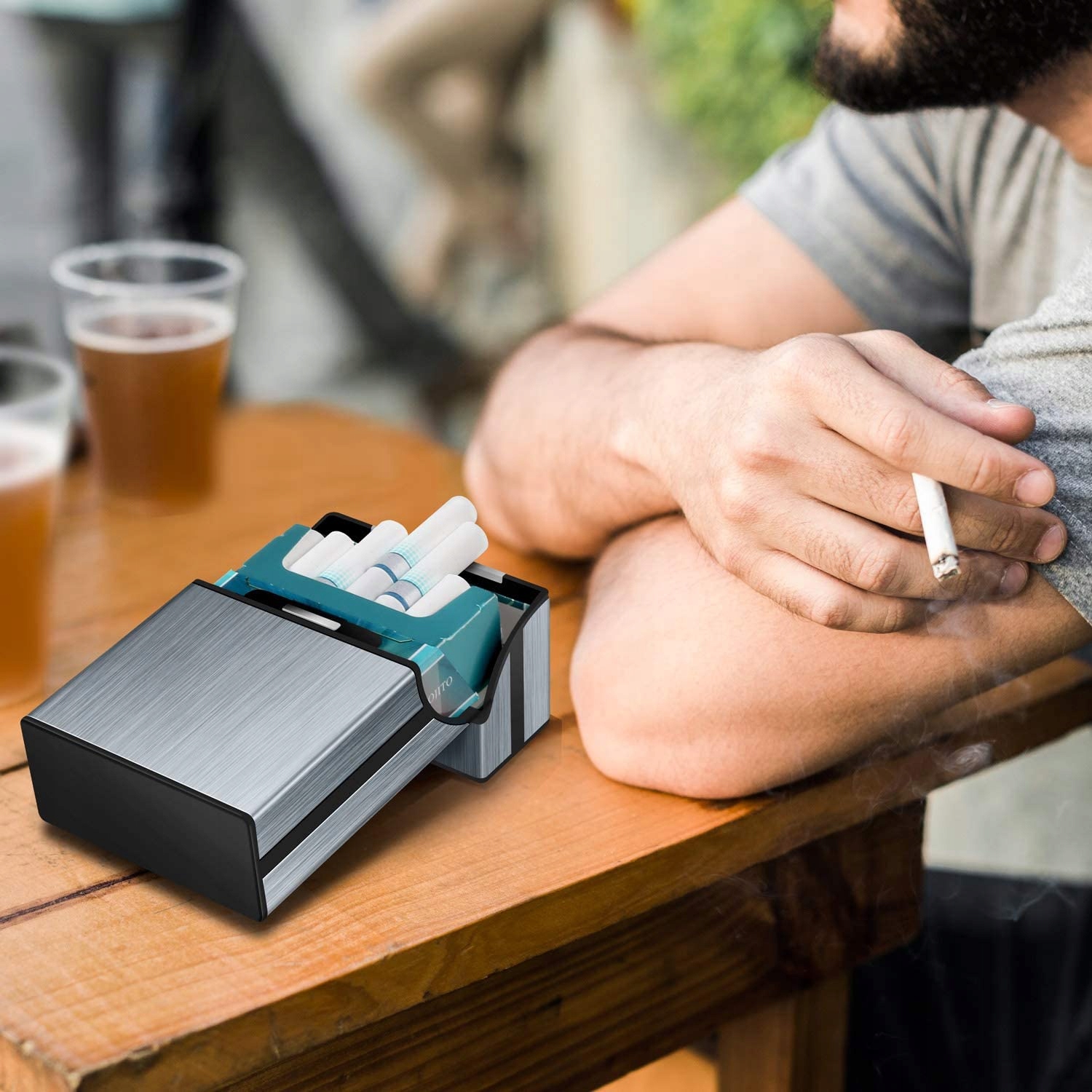 🔥Надежная защита:Корпус изготовлен из высококачественного алюминиевого сплава, прочный и легкий, устойчивый к царапинам и воде, эффективно защищает сигареты от влаги и плесени.