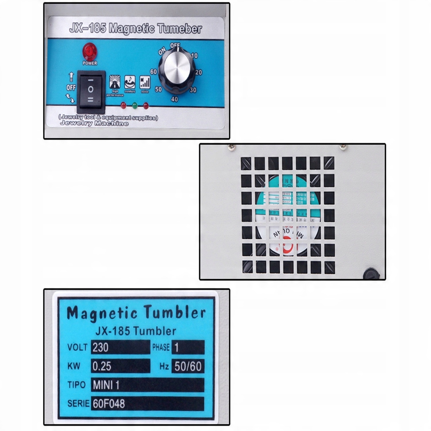 - Полнофункциональная кнопка очистки, отображаемая на панели управления, позволяет легко настроить время и режим вращения магнитного барабана для ювелирных полиролей. Можно добиться полигональной полной шлифовки заготовки, быстро удалить ржавчину;