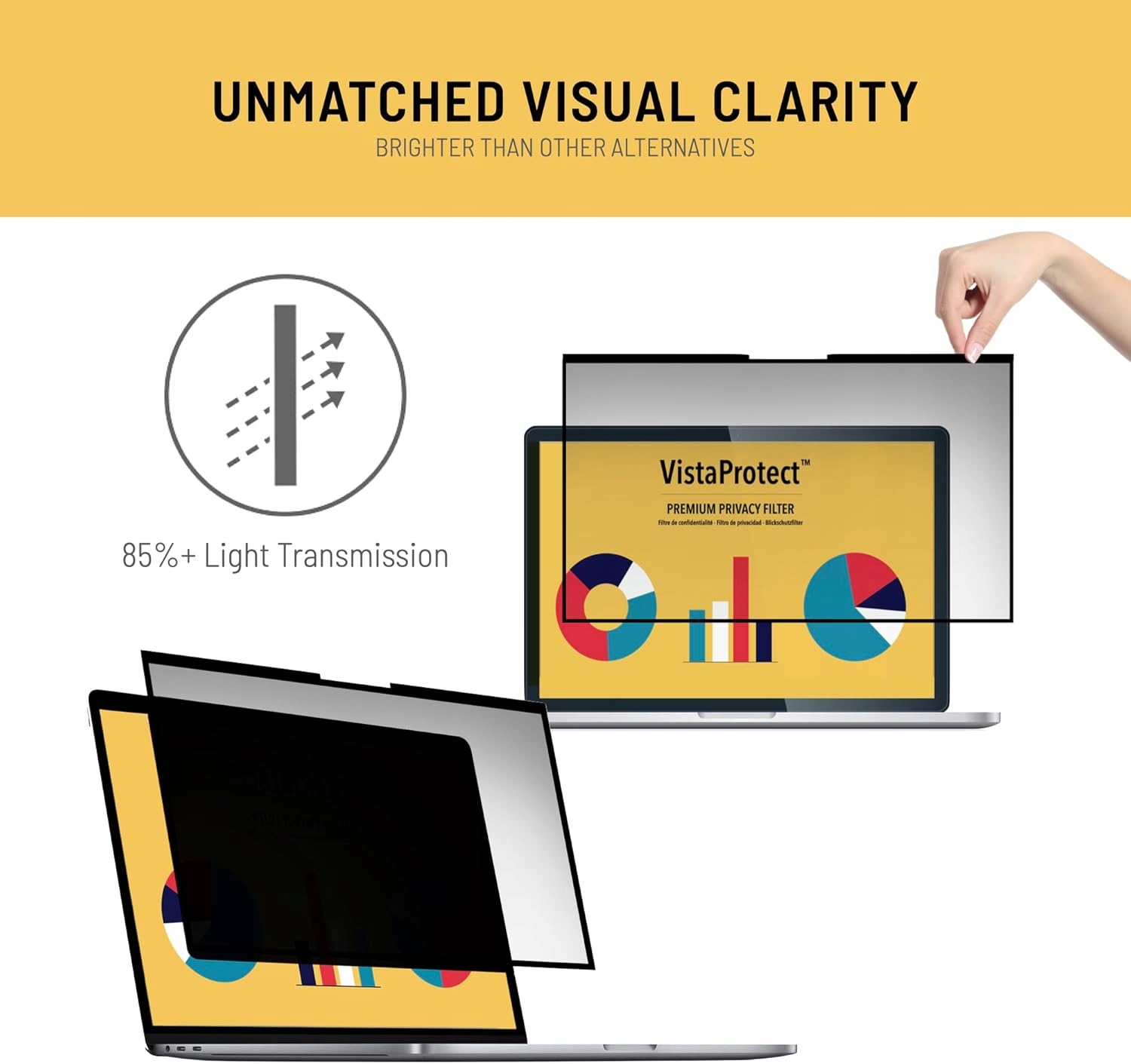 защита от визуального взлома благодаря фильтрам конфиденциальности VistAprotect , разработанных в Швейцарии с материалами высочайшего качества. Эти фильтры являются идеальным решением, обеспечивающим конфиденциальность информации на экране, идеально подходит для открытых офисных комнат, здравоохранения, финансовых учреждений или путешествий. Благодаря расширенной микро -жизни технологии, эти небольшие вертикальные жалюзи ограничивают угол обзора до 60 градусов , благодаря которого экран виден только тогда, когда он находится перед ним. Их очень легко установить, временно или навсегда, в зависимости от ваших потребностей.