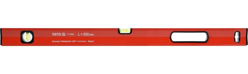 магнитный уровень 800 мм, алюминий, лакированный профиль, два YT-30062 Yato