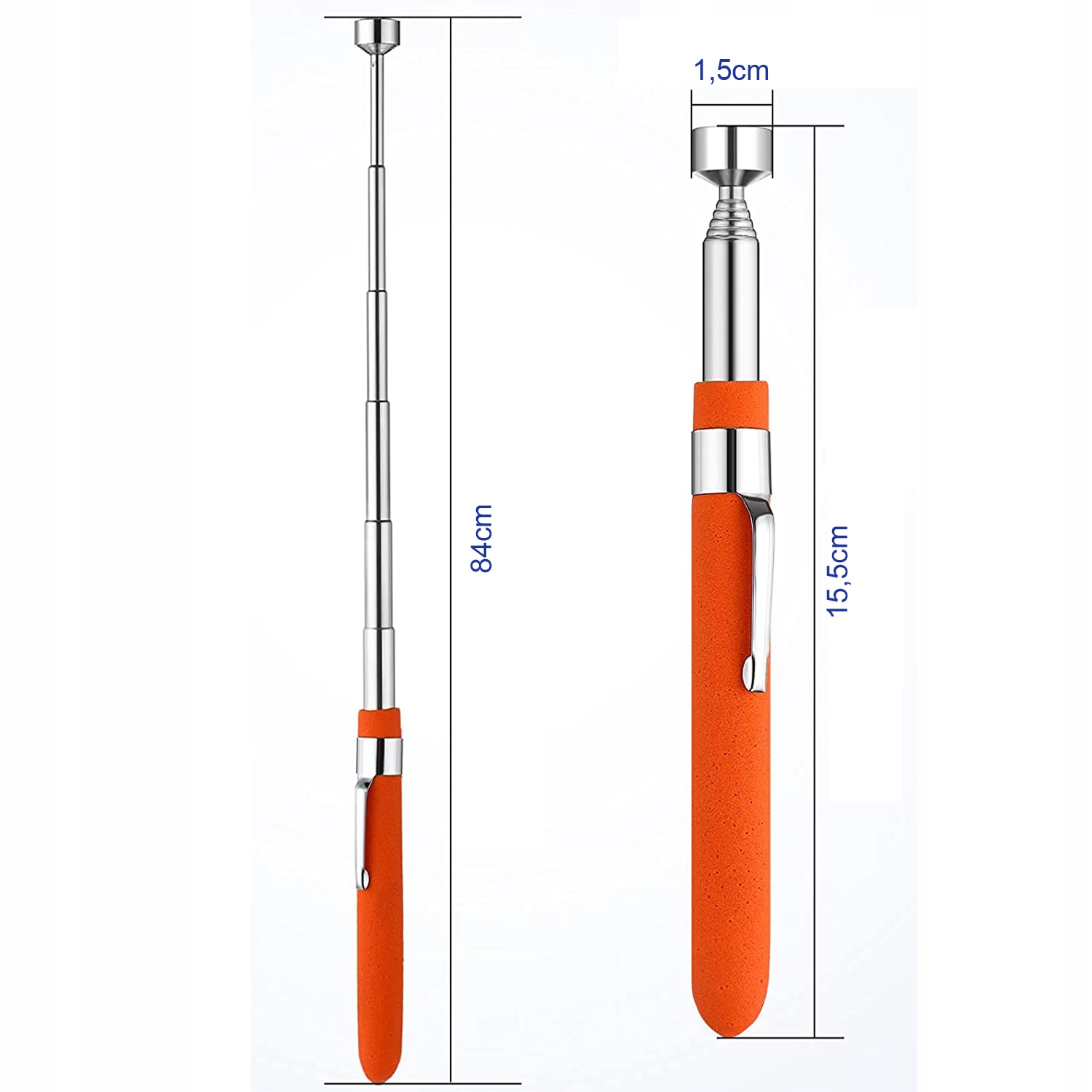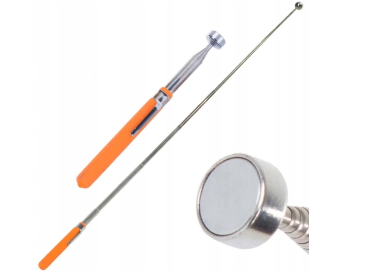 - Телескопическая рука длиной до 84 см заканчивается магнитом для подъема металлических элементов, таких как винты, гайки или прокладки.