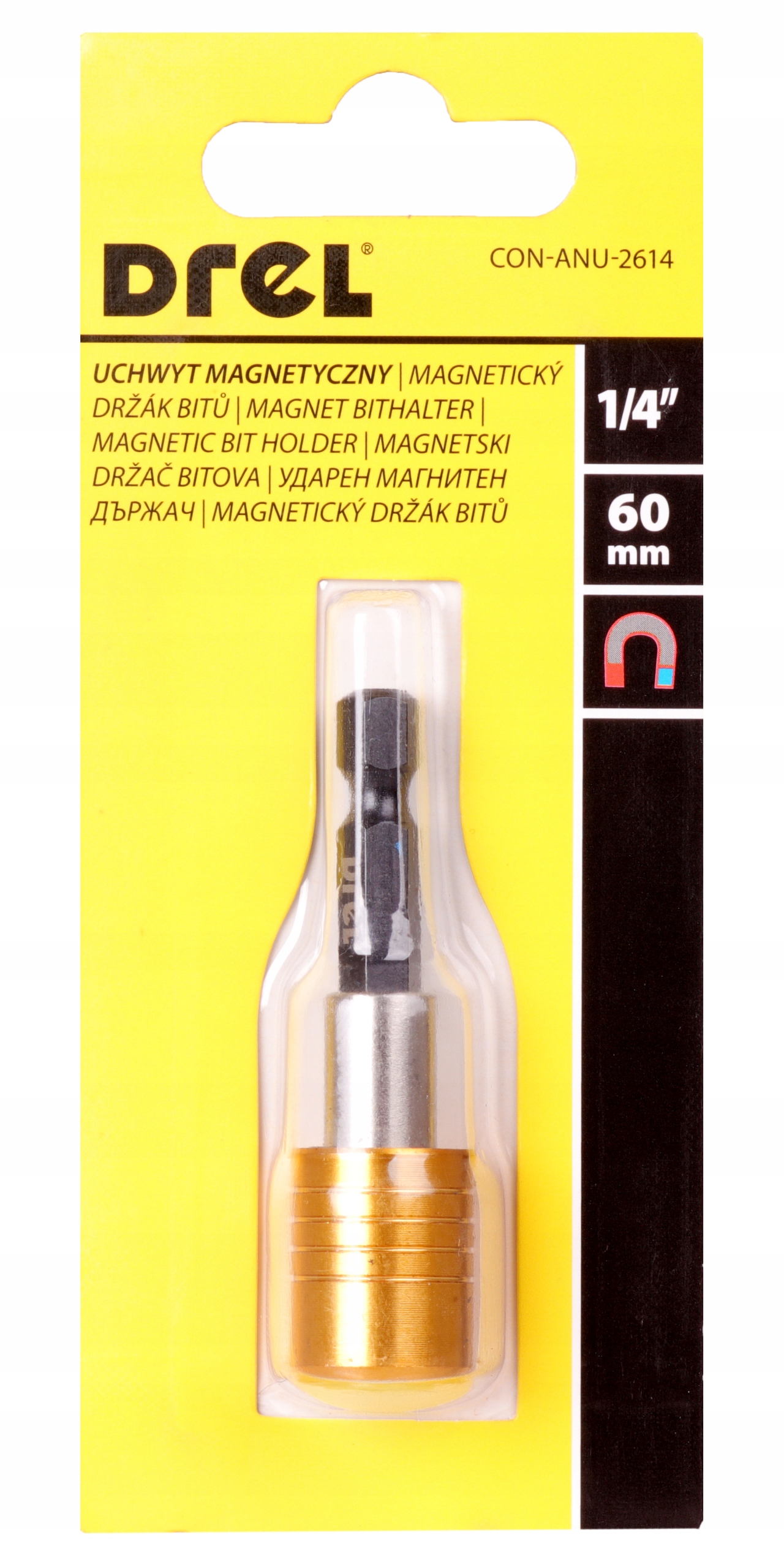 Это прочный держатель длиной 60 мм и хвостовиком 1/4 дюйма, имеющий магнит и быстроразъемный разъем, обеспечивающий безопасное и быстрое крепление сверла, бита. наконечник или другие инструменты.