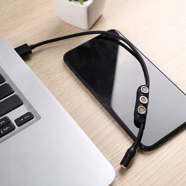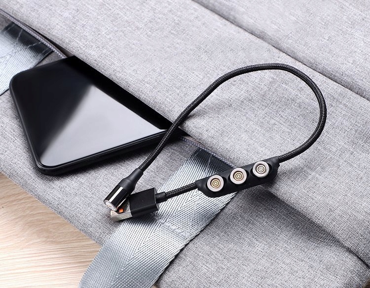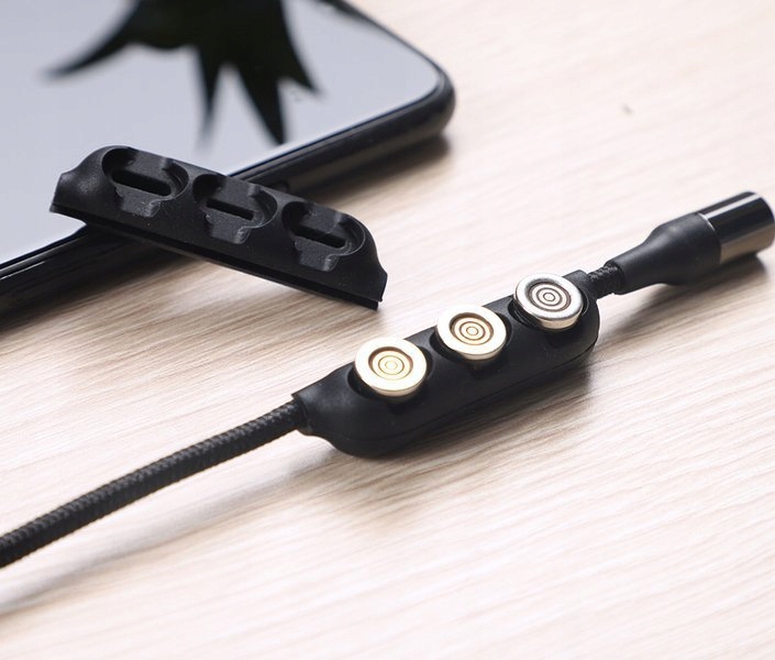 Небольшой гаджет, позволяющий безопасно хранить магнитные насадки. Органайзер имеет крючок, позволяющий прикрепить его к кабелю. Каждое отверстие предназначено для разного типа наконечников, например micro USB, USB Type-C и iPhone.