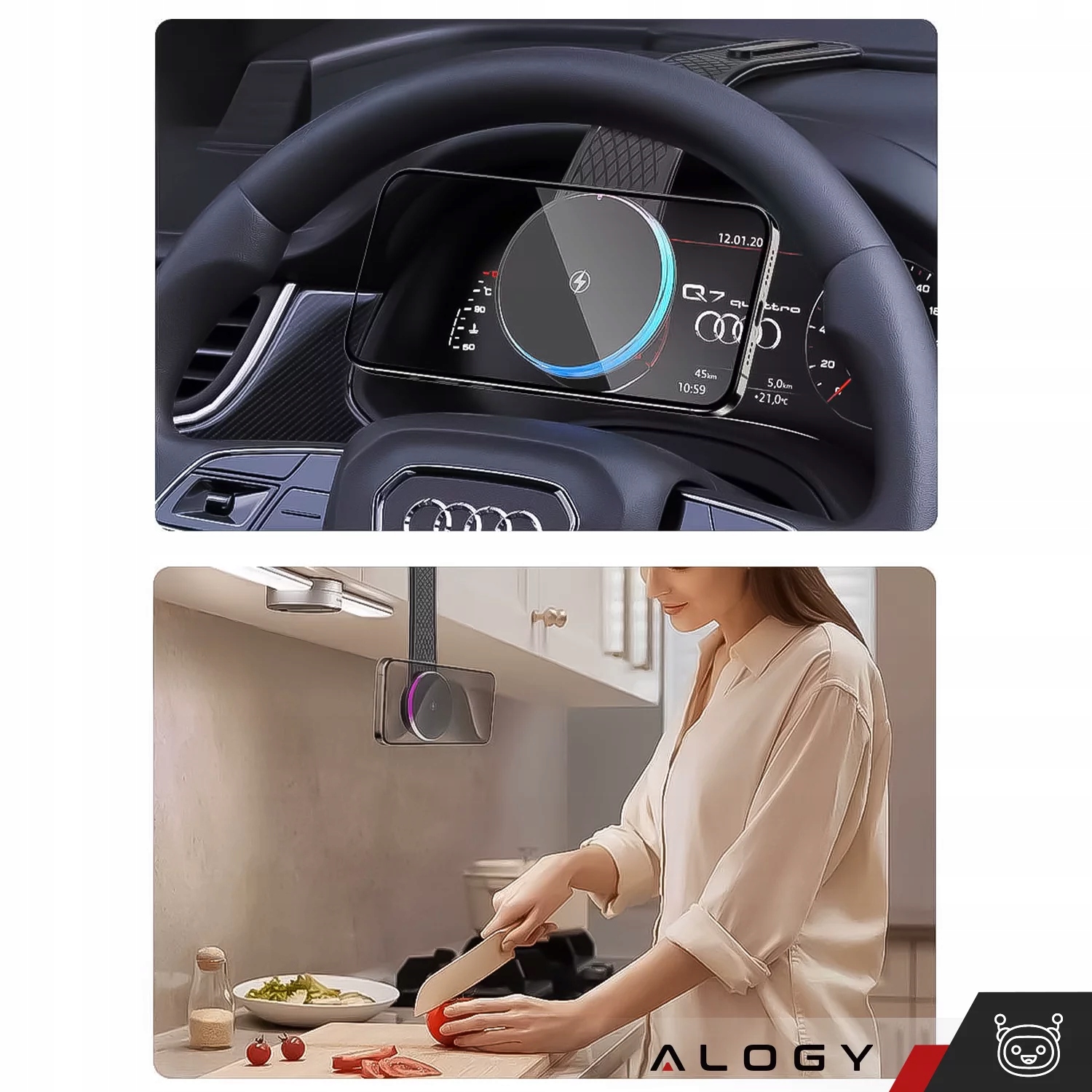 ✅ Держатель автомобилей Alogy Alogy Car Holder с функцией индукционной зарядки является идеальным решением для пользователей iPhone , а смартфоны, поддерживающие технологию QI. Предоставляет стабильный и безопасное крепление благодаря сильным магнитам и дополнительной монтажной липучке.