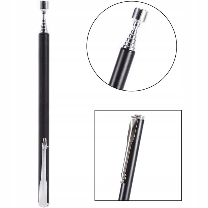Телескопическая стрела Длина 61 см заканчивается магнитом для подъема металлических предметов, таких как винты, гайки, шайбы и т. д., грузоподъемностью 3 кг.