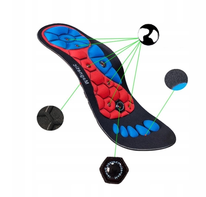 • Подушечки для акупрессуры. Магнитные подушечки для точечного массажа созданы с использованием передовой технологии магнитной терапии. Они стратегически расположены магниты, которые стимулируют важные точки акупрессуры на подошвах ног. Эта стимуляция может помочь улучшить кровообращение и общее самочувствие.