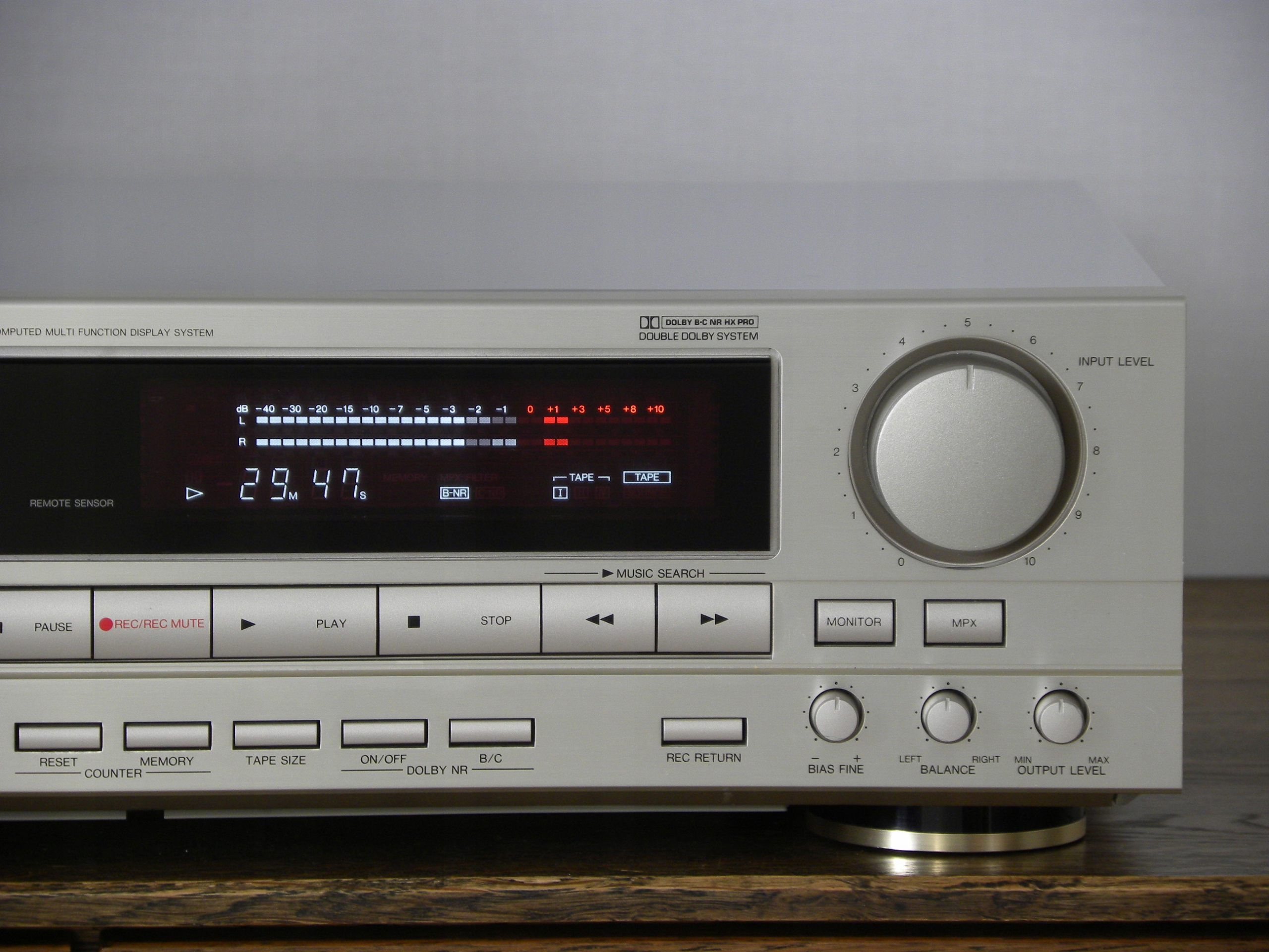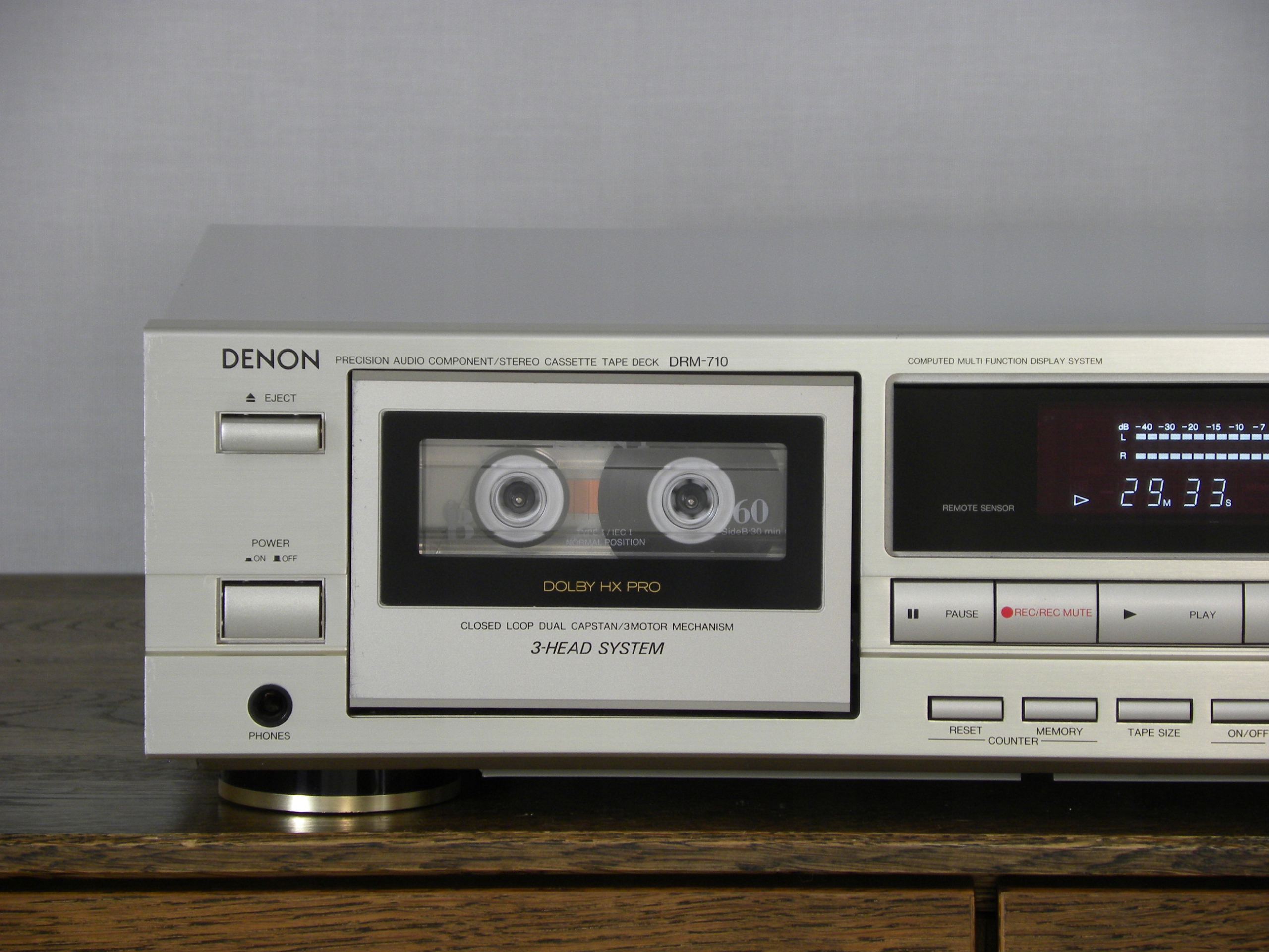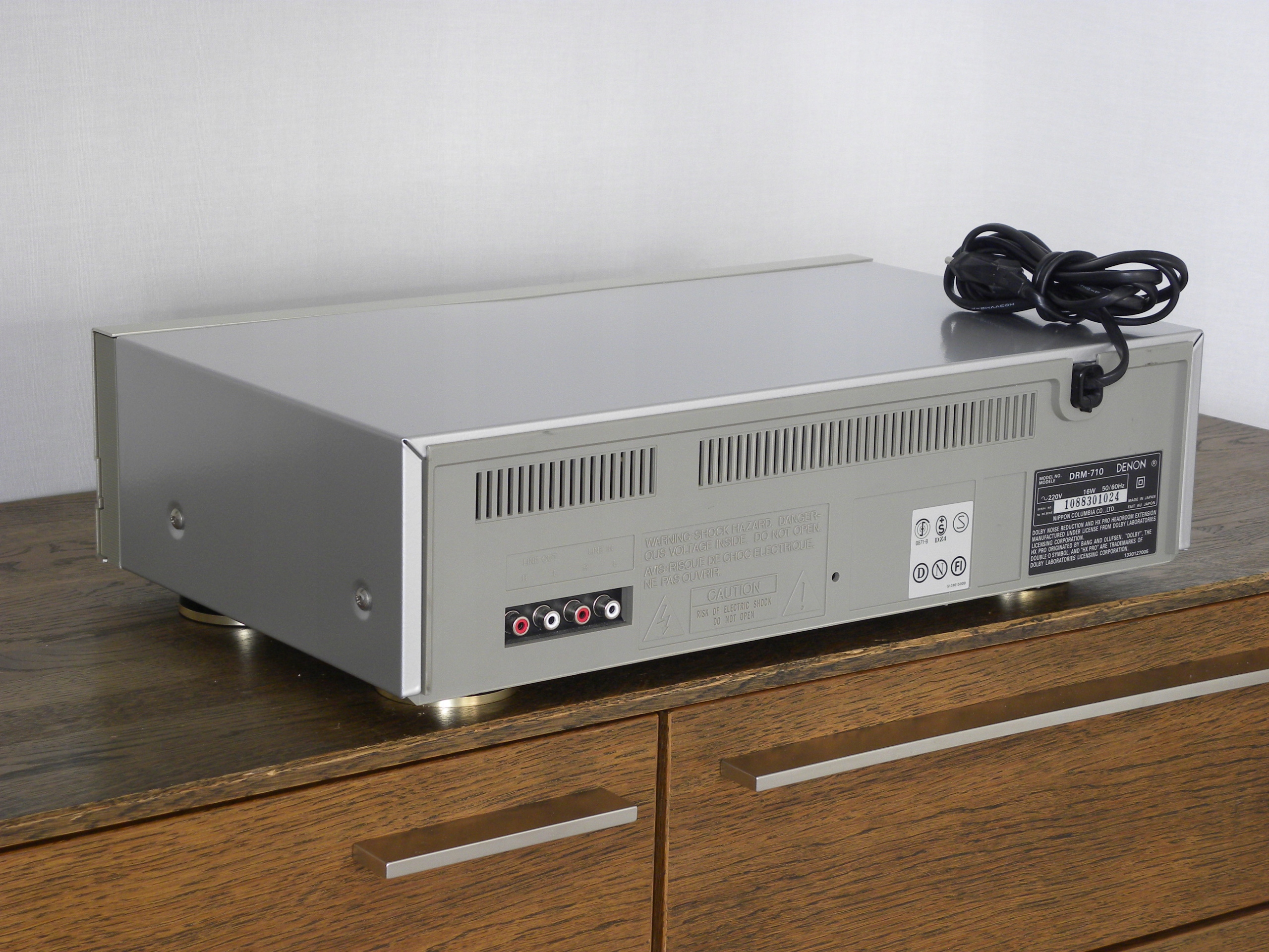 DRM-710 выпускался в 1992-1994 годах. На тот момент это был топовый и вообще один из лучших магнитофонов этой фирмы. Здесь используется бесшумный механизм Двойной шпиль с замкнутым контуром. 3 мотора, 2 вала и 3 головки.