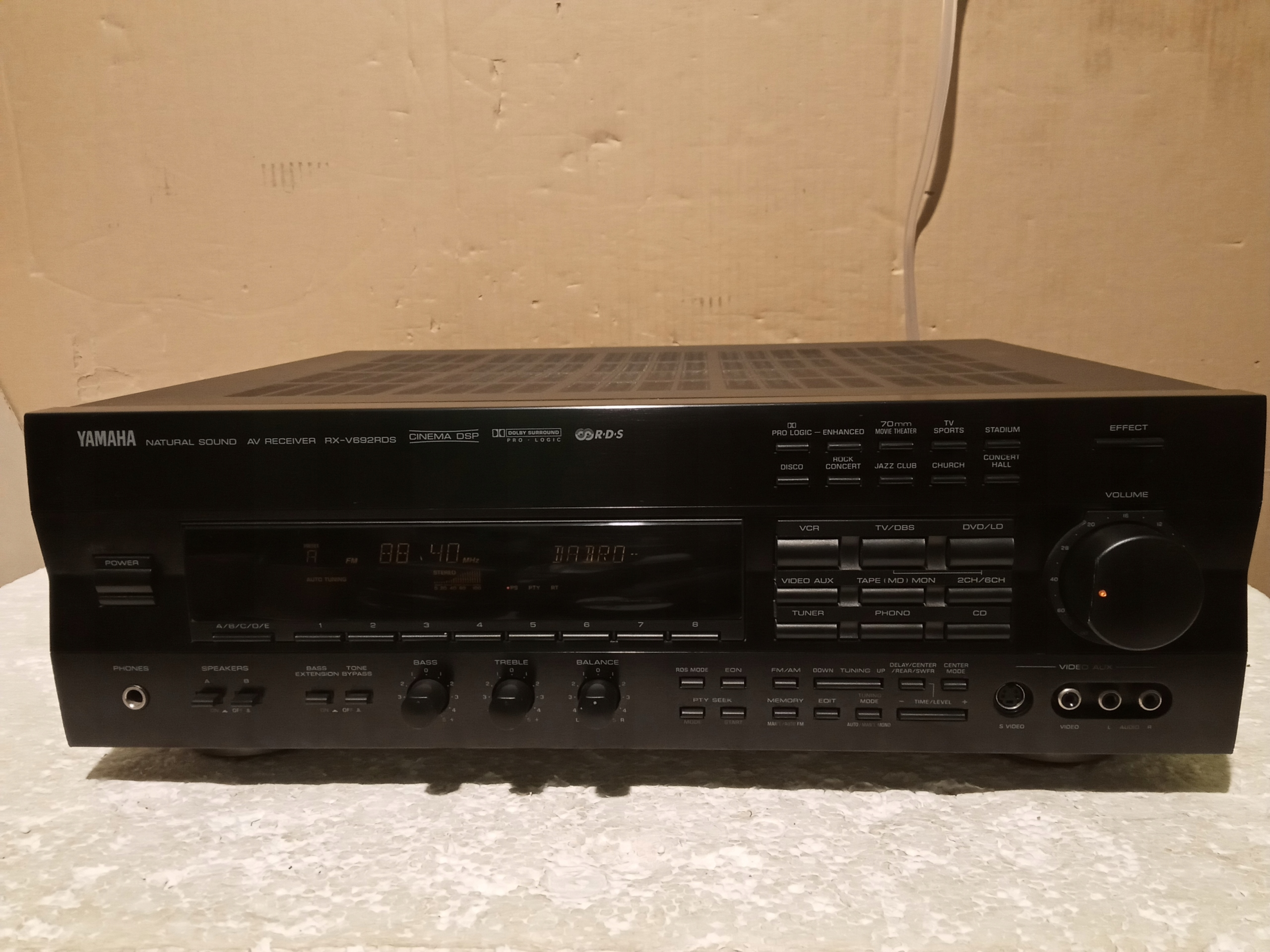 Б/у и рабочий Усилитель-тюнер: YAMAHA RX-V692RDS, без пульта. Тюнер принимает. Немного поиграйте с ручкой VOLUME.