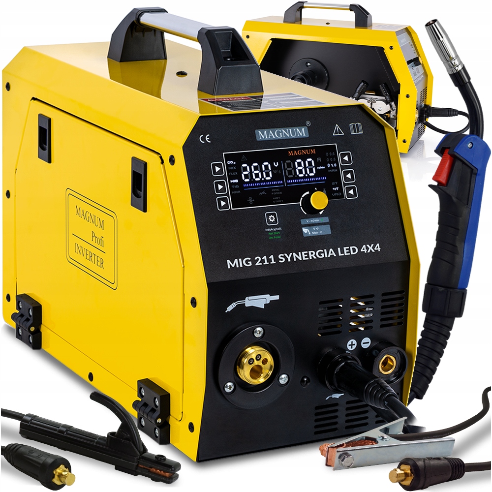 MAGNUM MIG 211 Synergia LED 4x4 — технологичный сварочный аппарат для сварки MIG/MAG, MMA, TIG LIFT. Аппарат предназначен для ручной, электросварки низких температур. -углеродистые стали, низколегированные, высоколегированные, нержавеющие и кислотостойкие стали, алюминий и его сплавы и т.д. Magnum MIG 211 Synergia LED 4x4 предназначен для всех видов сварочных работ, выполняемых профессионалами. в автомобильных и слесарных мастерских, ремонтных мастерских, промышленных мастерских и т.п., а также у любителей/любителей в домашних мастерских. Благодаря предельно простой панели управления, идеально подобранному алгоритму синергетических программ и цифровому управлению процессом этот прибор чрезвычайно прост в использовании и позволяет людям даже без опыта сварки клонировать сварные соединения. Помимо синергетического управления, устройство имеет возможность установки параметров сварки традиционным (ручным) способом без синергии.