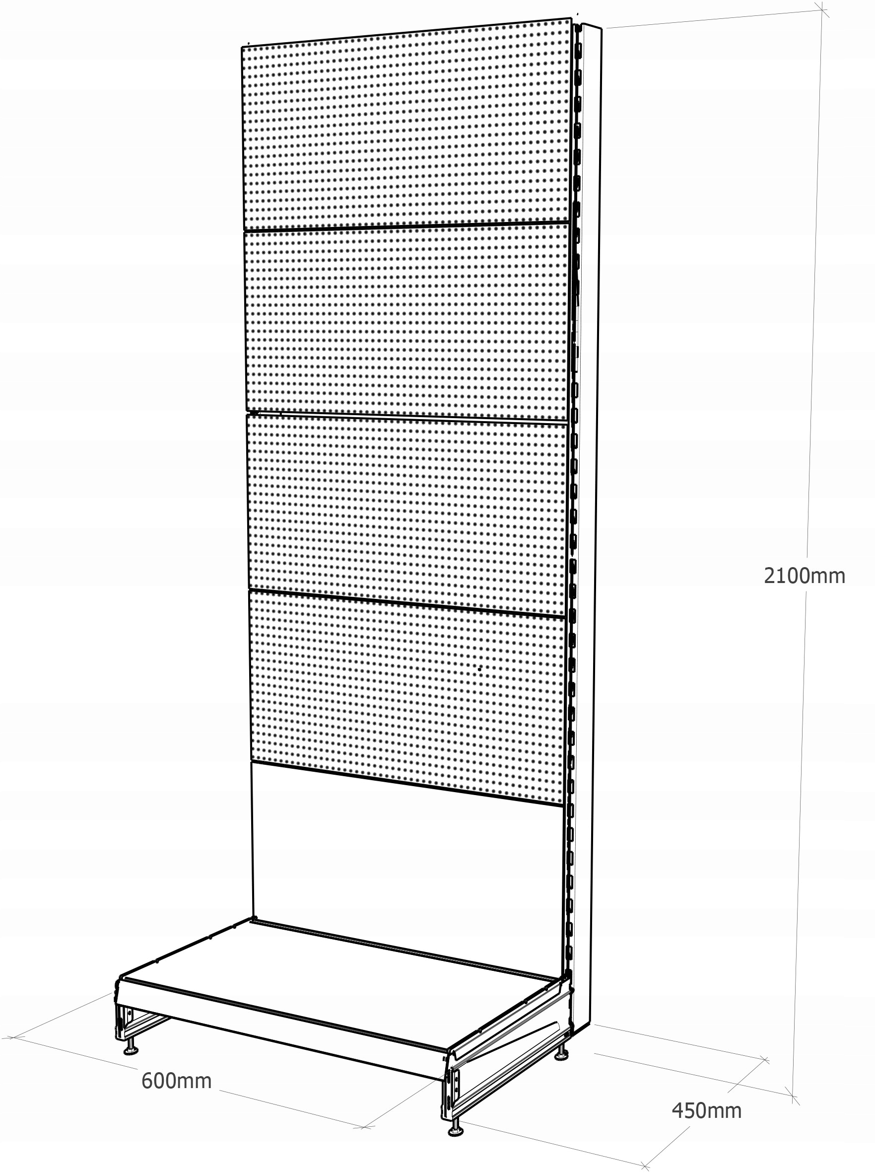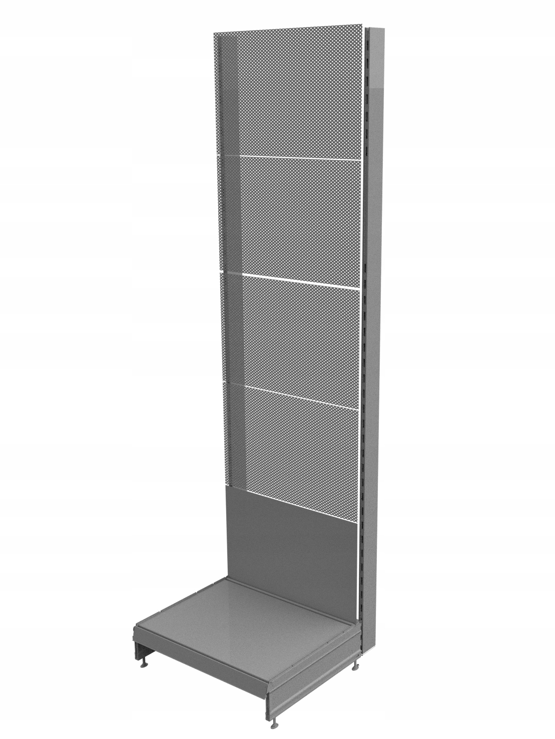 Металлический, односторонний стойка из коричневых рыб, полностью сделанная из высококачественных металлических листов и металлических листов, покрытых порошкой. Задняя часть стойки сделана из перфорированного листа с повышенной прочностью. Используемая перфорация позволяет подключить крючки с различной длиной, толщины и типа для представления статей.