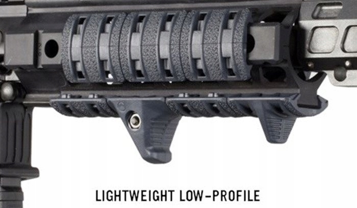 Набор состоит из совместимых с элементами ткача / пикатина, сделанных из текстурированного полимера в черном.