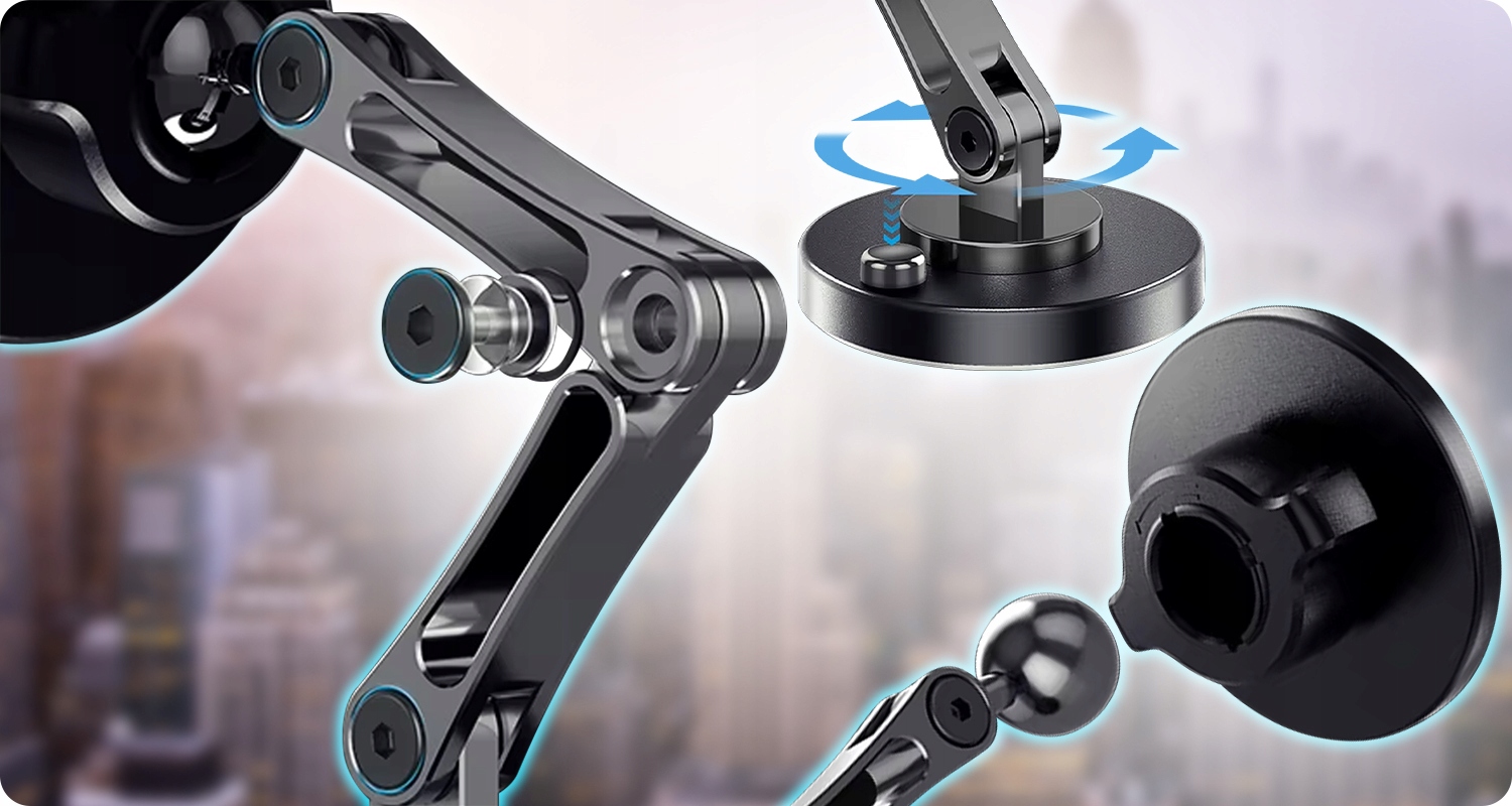 ⚙ Каждый из соединения удерживает на прочном винте Allen, который вы можете затянуть, используя клавишу, прикрепленную к набору клавиш . ⚓ Сильный магнит в сочетании со стабильной конструкцией способна поддерживать самые сложные устройства, доступные на рынке, даже при езде на ухабистых дорогах!