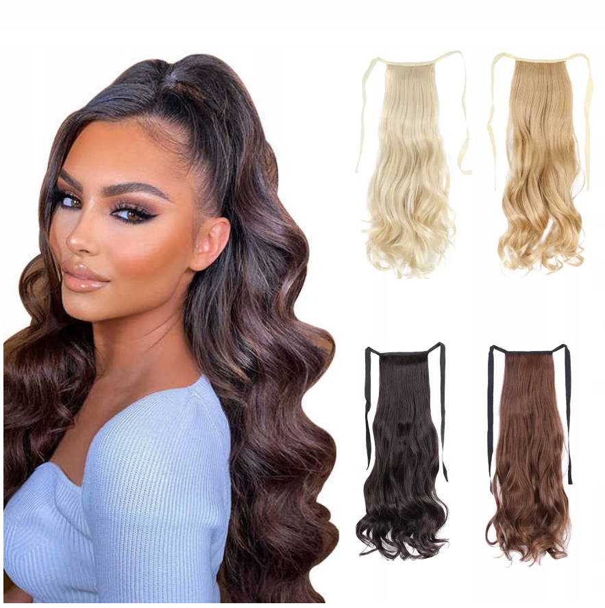 Пони привязанный волнистые синтетические волосы кудрявые хвостики длинный пони хвост закрепленный хвост