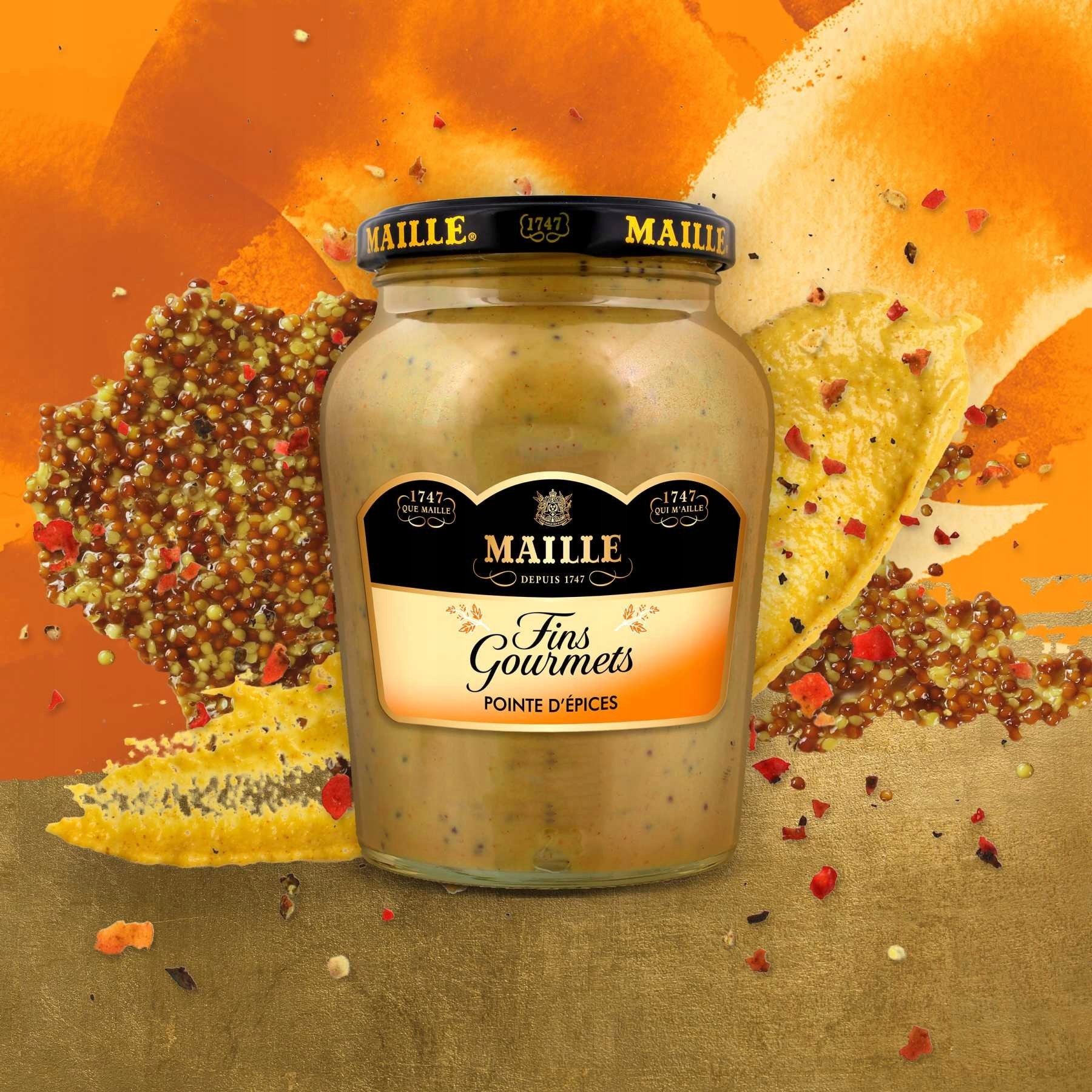 Maille Moutarde Fins Gourmets Pointe D'Espices — это идеальная смесь горчицы, специй и мака. Все это создает идеальное сочетание.