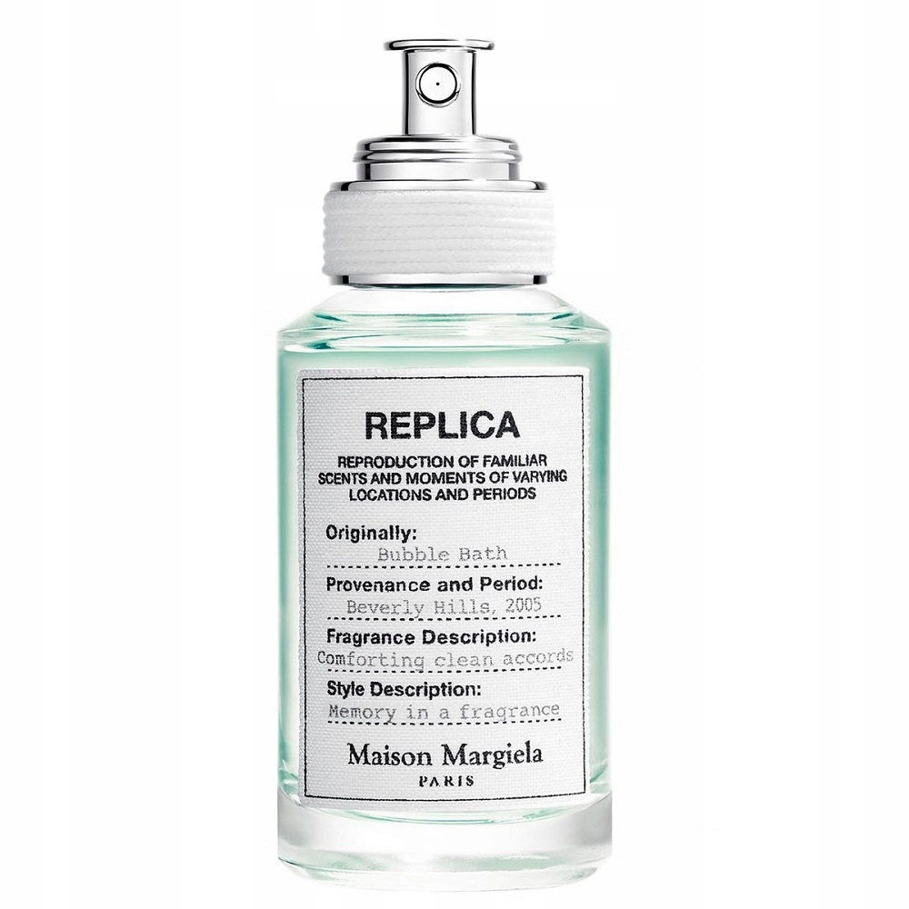Replica Bubble Bath — туалетная вода от бренда Maison Margiela. Цветочно-древесно-мускусная парфюмерная композиция, выпущенная в 2020 году. Свежий аромат, созданный для женщин и мужчин.