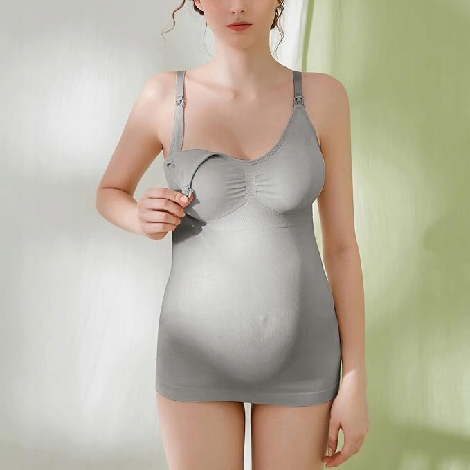 Модель с утягивающим эффектом, помогающая слегка сформировать живот и талию после родов. Его можно носить как верхнюю рубашку или под одежду. Регулируемые бретели обеспечивают комфорт и удобство в любое время.