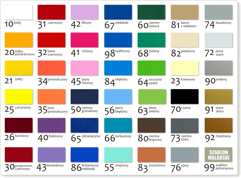 Набор может быть выполнен в одном из 41 модного матового цвета или в виде одноразового самоклеящегося трафарета для рисования. В зависимости от настроек вашего монитора отображаемые цвета могут незначительно отличаться от реальных. Цвета: 90, 91, 92 в металлизированном мате.