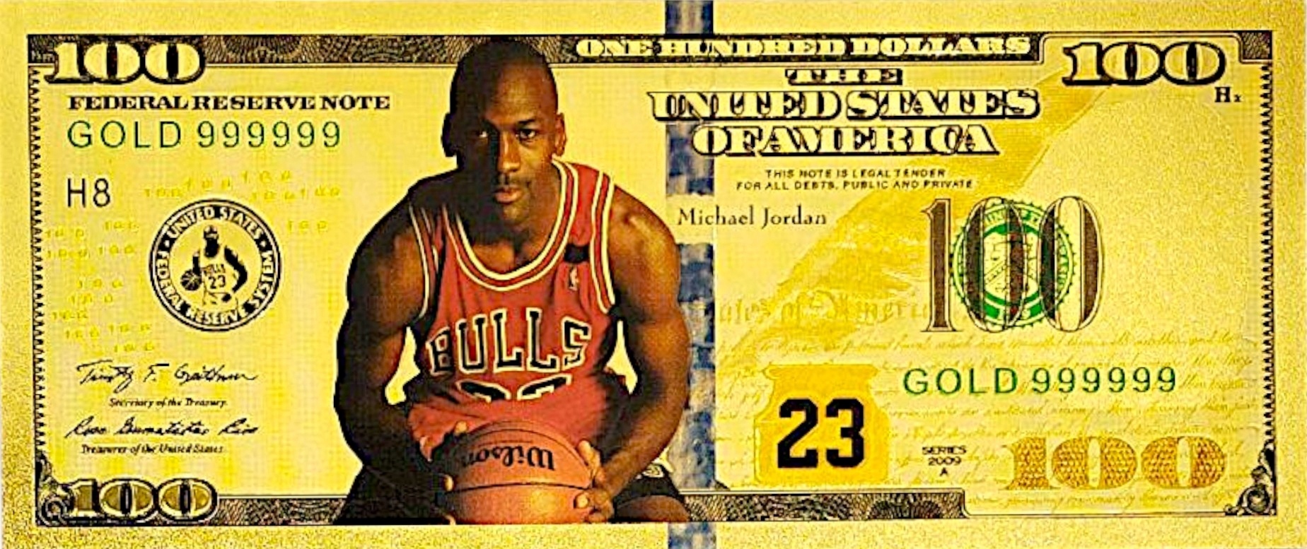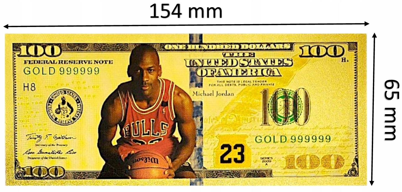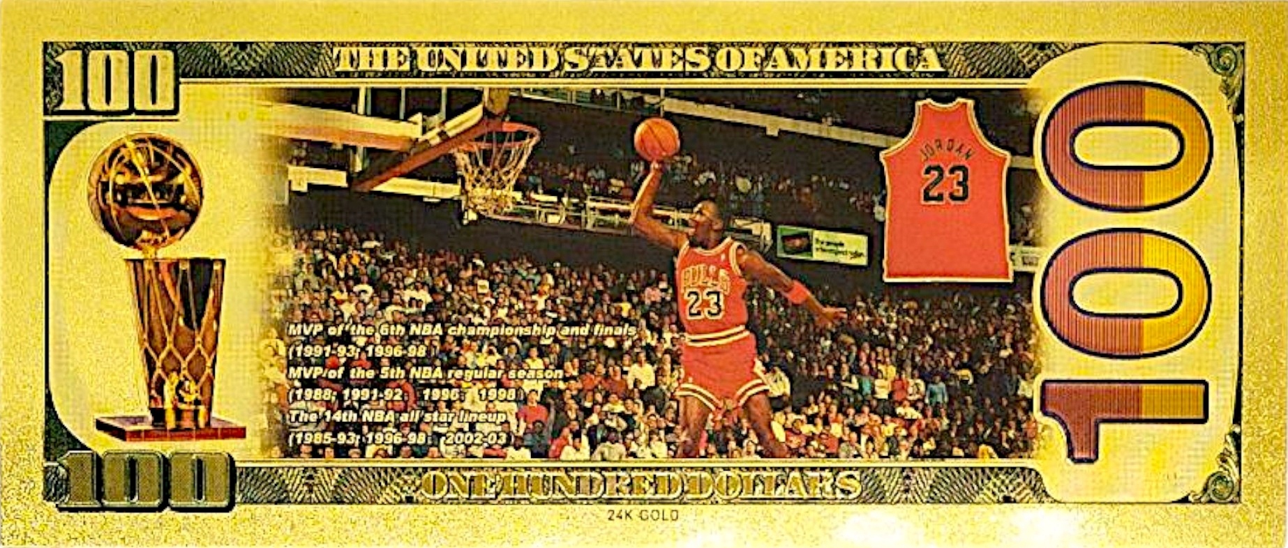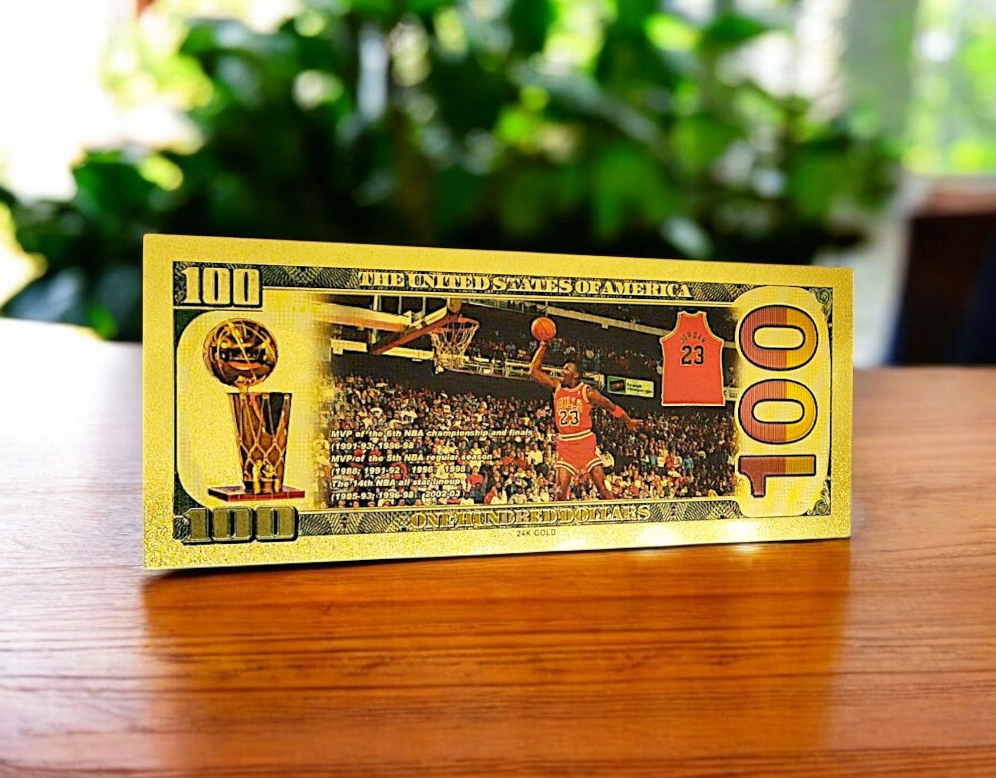 БАНКНОТА МАЙКЛ ДЖОРДАН 100 ДОЛЛАРОВ ПОЗОЛОЧЕННАЯ БАНКНОТА ПВХ