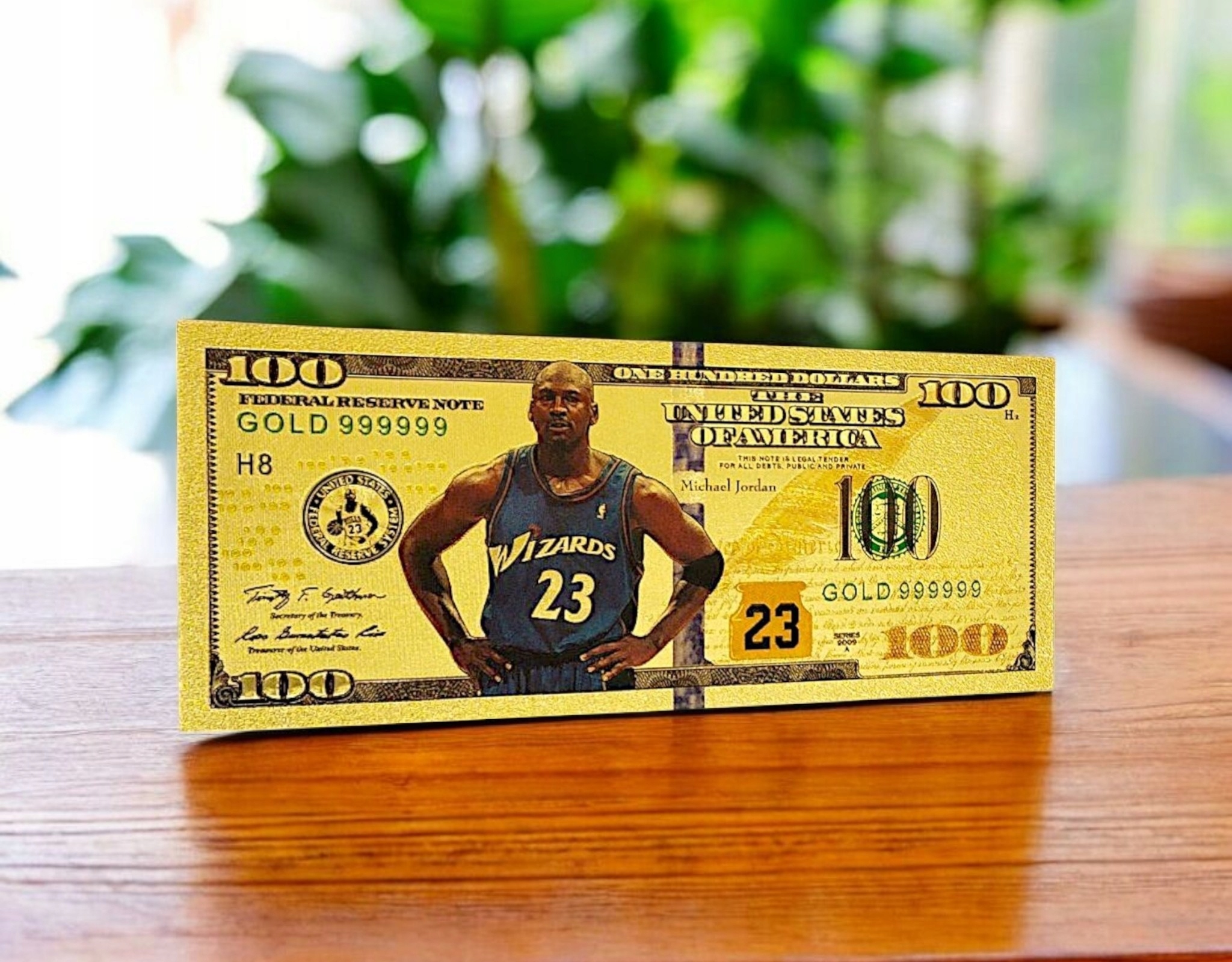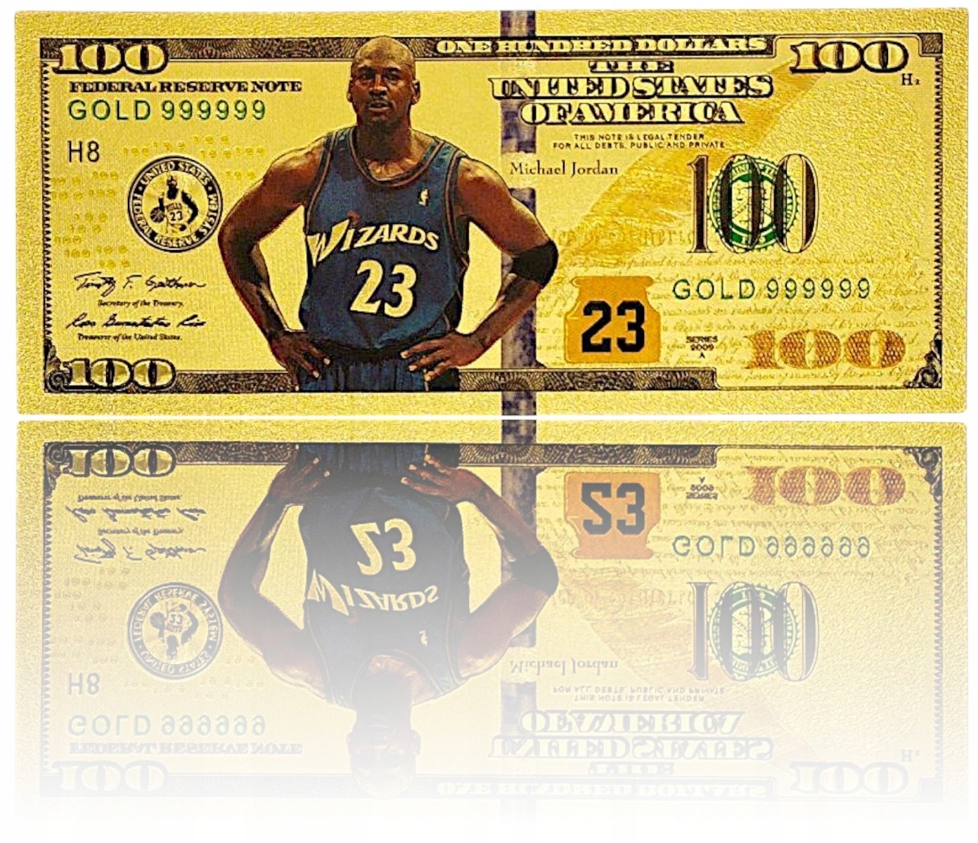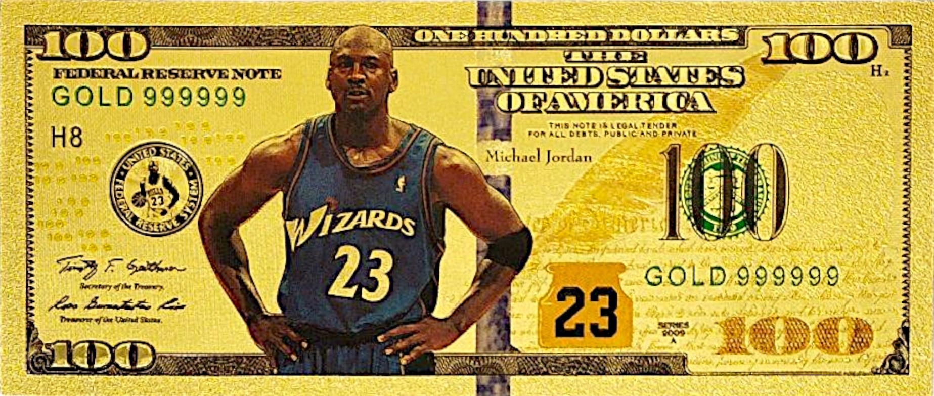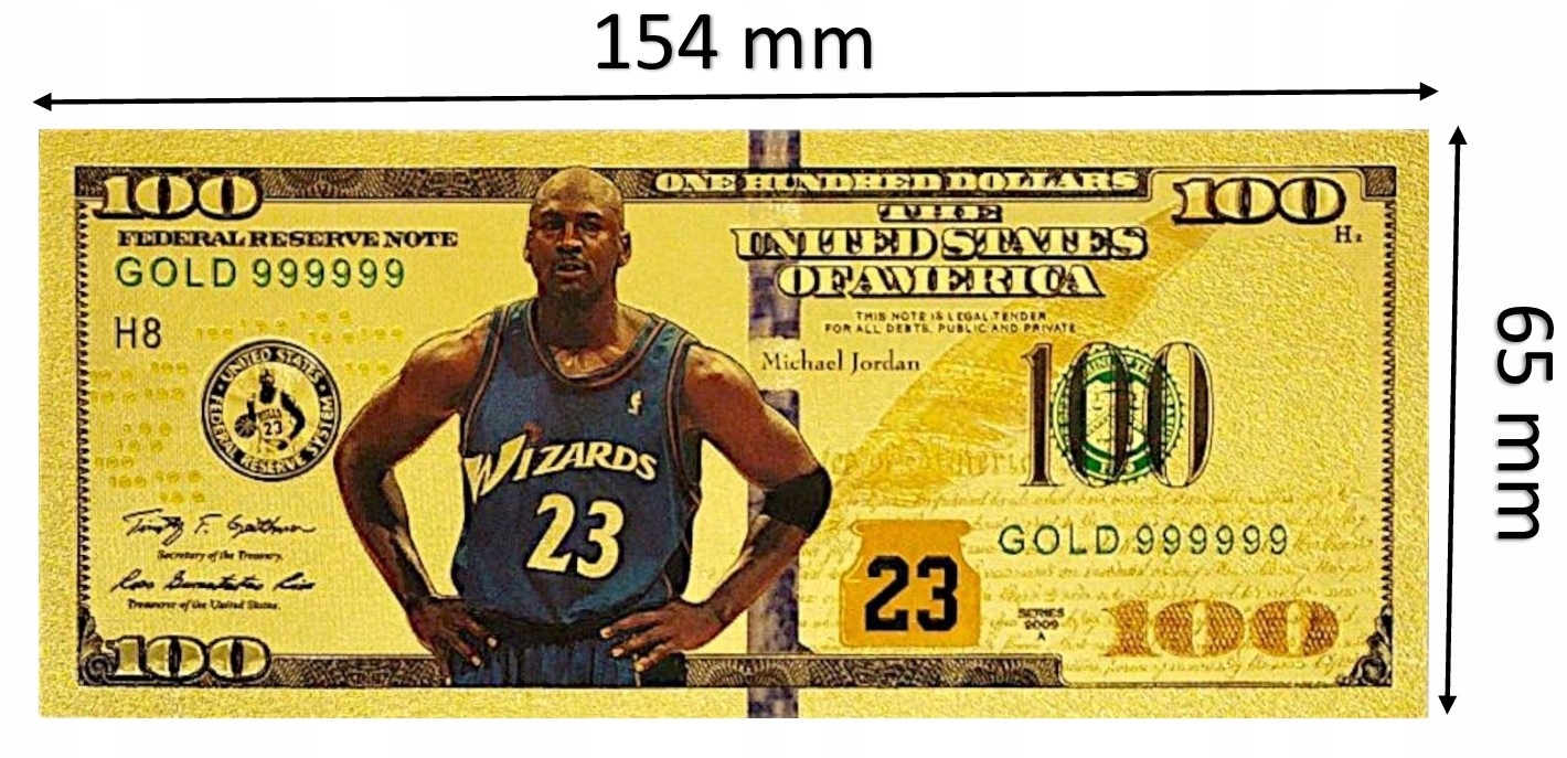 БАНКНОТА МАЙКЛ ДЖОРДАН 100 ДОЛЛАРОВ ПОЗОЛОЧЕННАЯ БАНКНОТА ПВХ