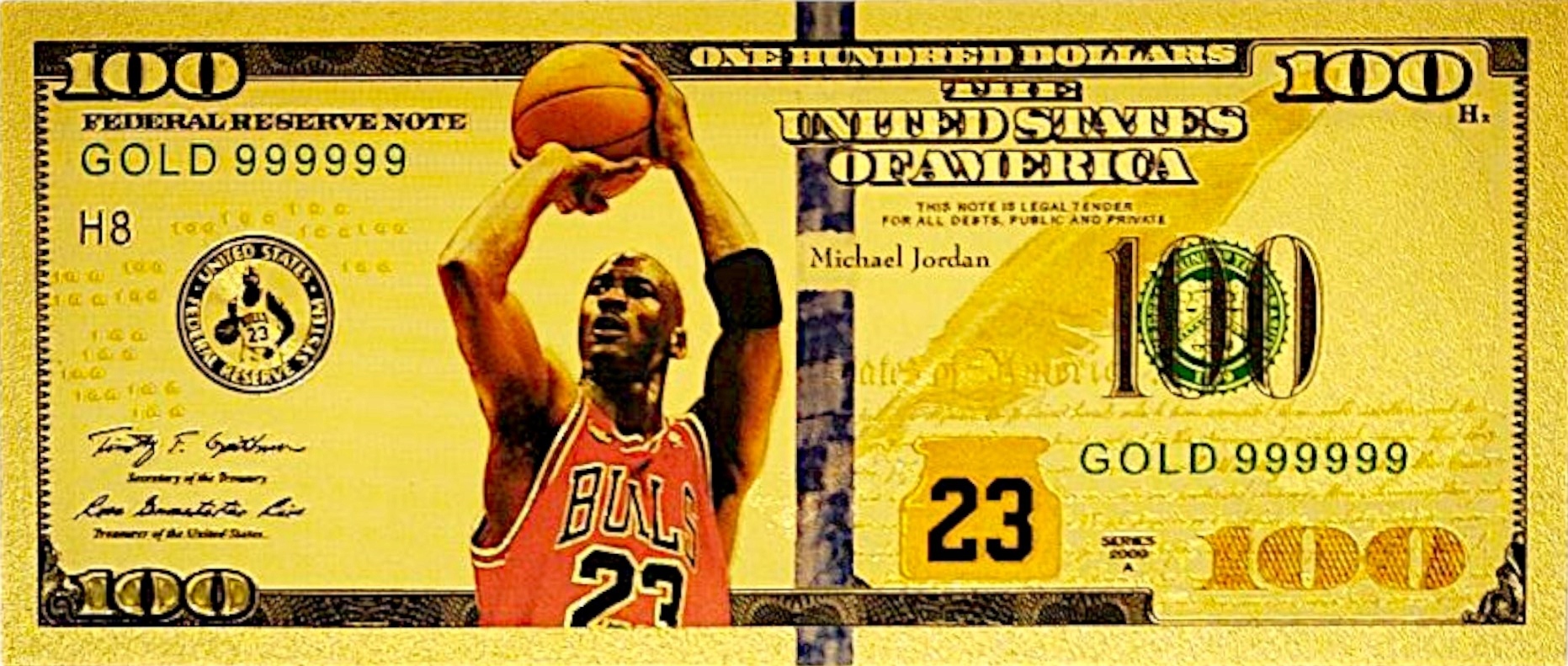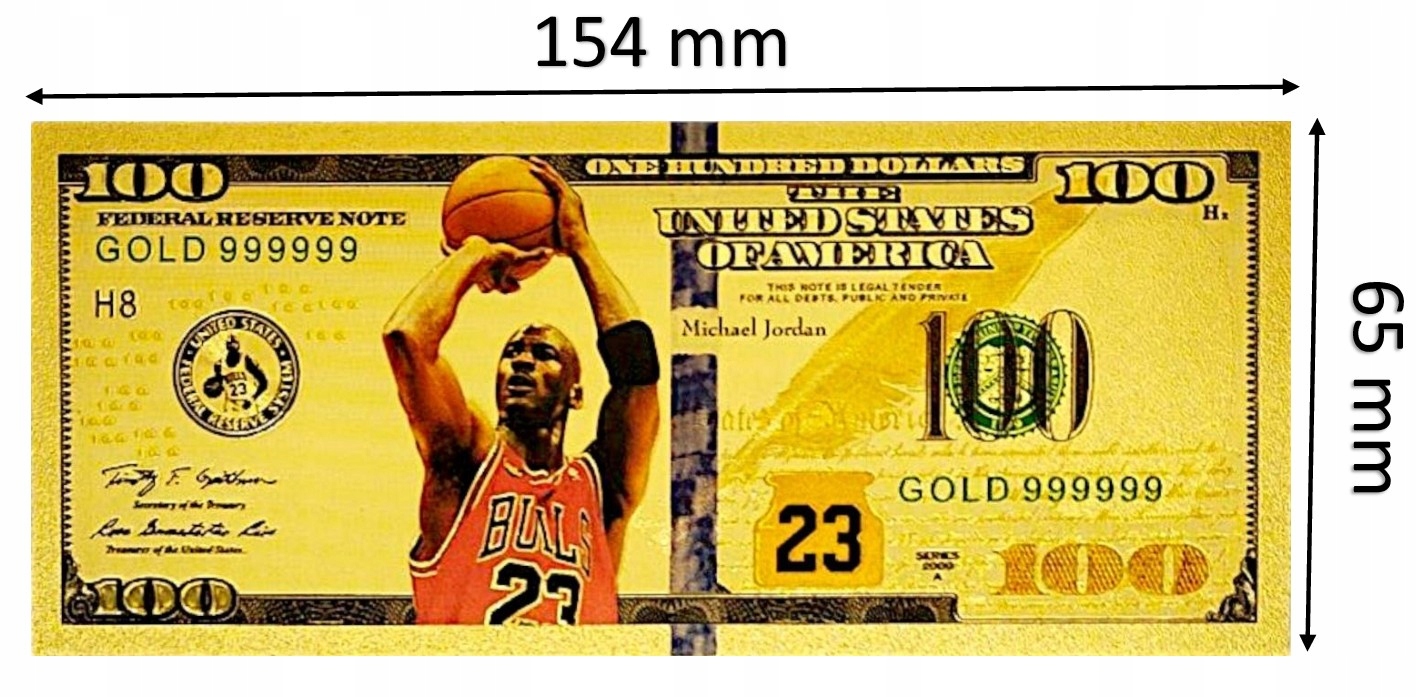 БАНКНОТА МАЙКЛ ДЖОРДАН 100 ДОЛЛАРОВ ПОЗОЛОЧЕННАЯ БАНКНОТА ПВХ