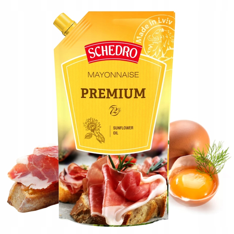 Майонез Щедро "Премиум 72%" – классический майонез с высокой жирностью, обеспечивающий превосходную кремовую консистенцию и характерный вкус. Изготовленный из натуральных ингредиентов и яичных желтков, он идеально подходит для салатов, сэндвичей, гамбургеров и блюд из яиц. Это идеальный компромисс между насыщенным вкусом и чуть более легкой консистенцией, чем у 80% версии.