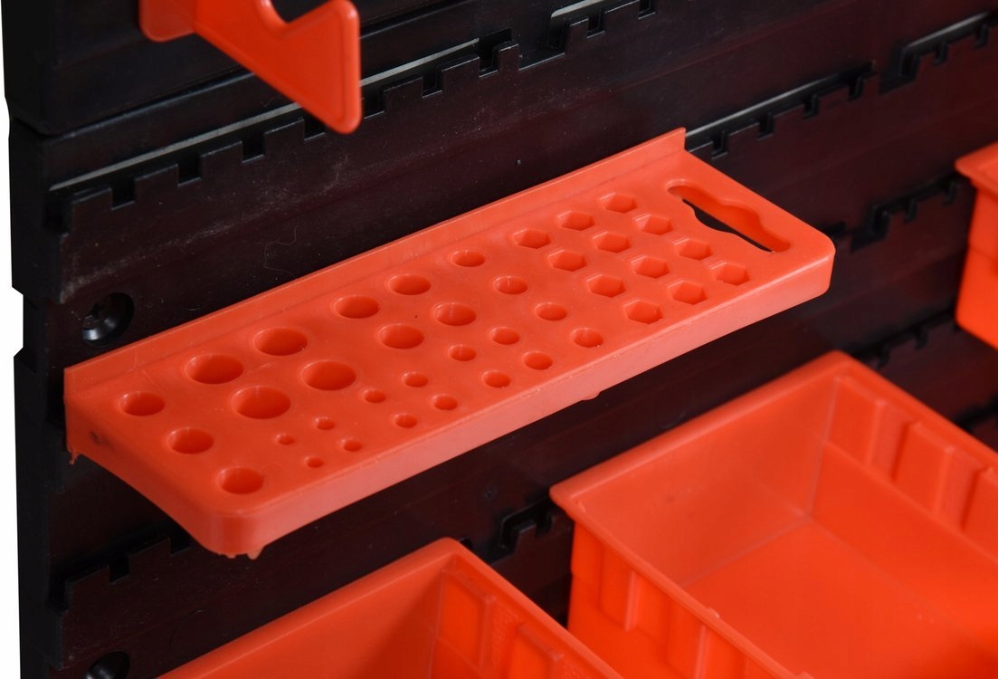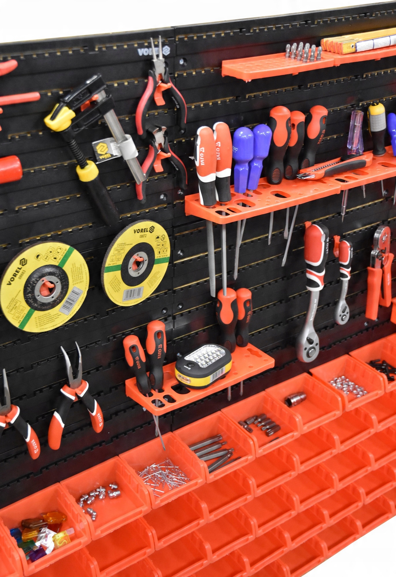 Доска для удобного хранения инструментов и мелких принадлежностей в мастерской и гараже. Она помогает поддерживать порядок, а систему контейнеров и вешалок легко адаптировать под свои нужды.