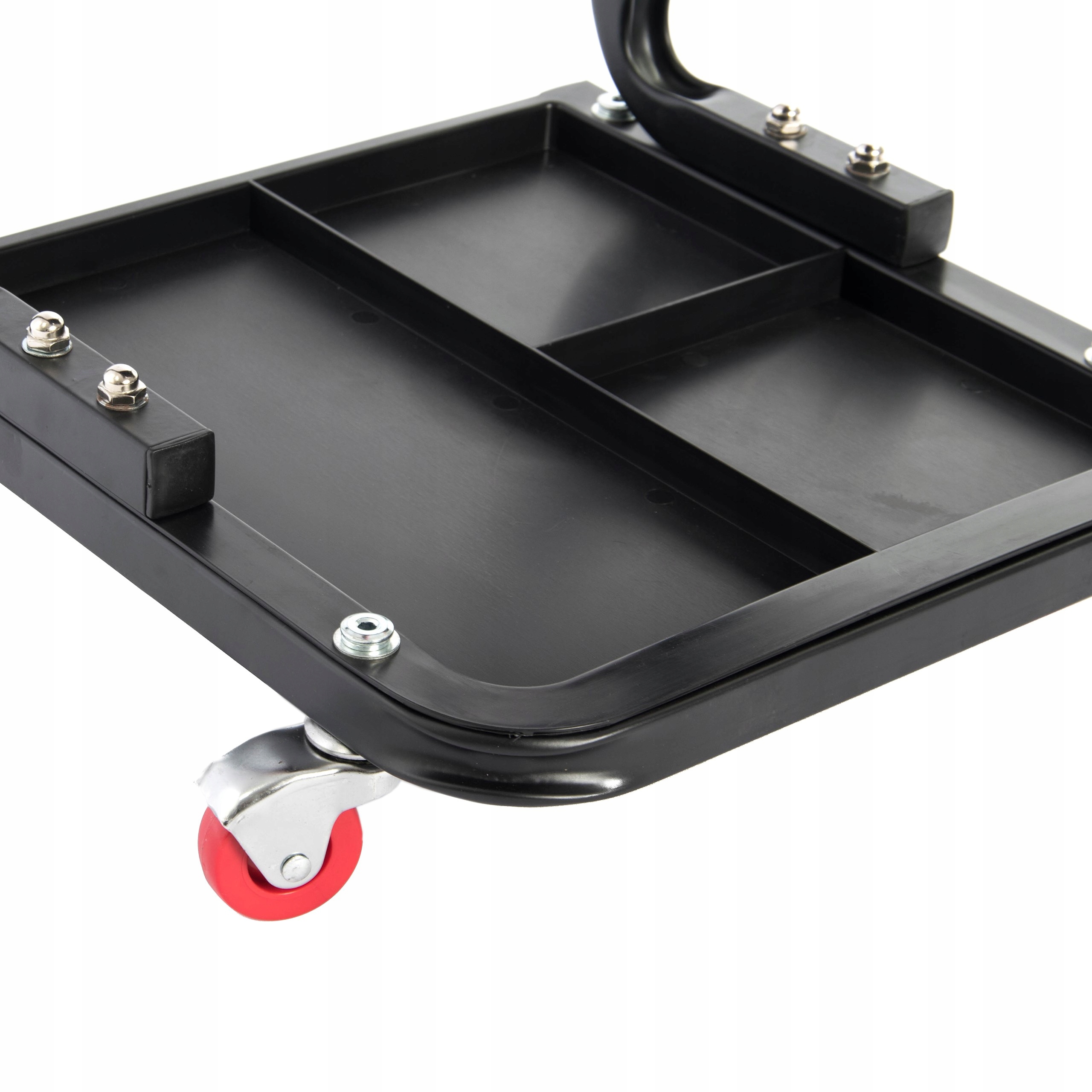 Табурет имеет четыре поворотных колеса на шарикоподшипниках, покрытых материалом, который не царапает поверхность. Сиденье очень устойчивое, допустимая нагрузка 80 кг.