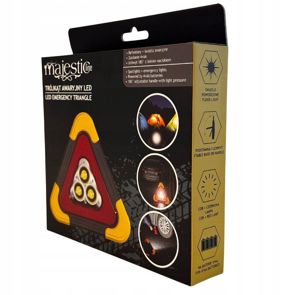 Технические данные Отметка Majesticline Модель ML-RN-01 Тип Majesticline привел аварийный треугольник для автомобиля Источник света 3 x основные светодиоды + 36 диодов SMD (включая красные предупреждающие огни) Яркость 800 - 1000 лм Режимы освещения Белый свет: сильный / слабый
