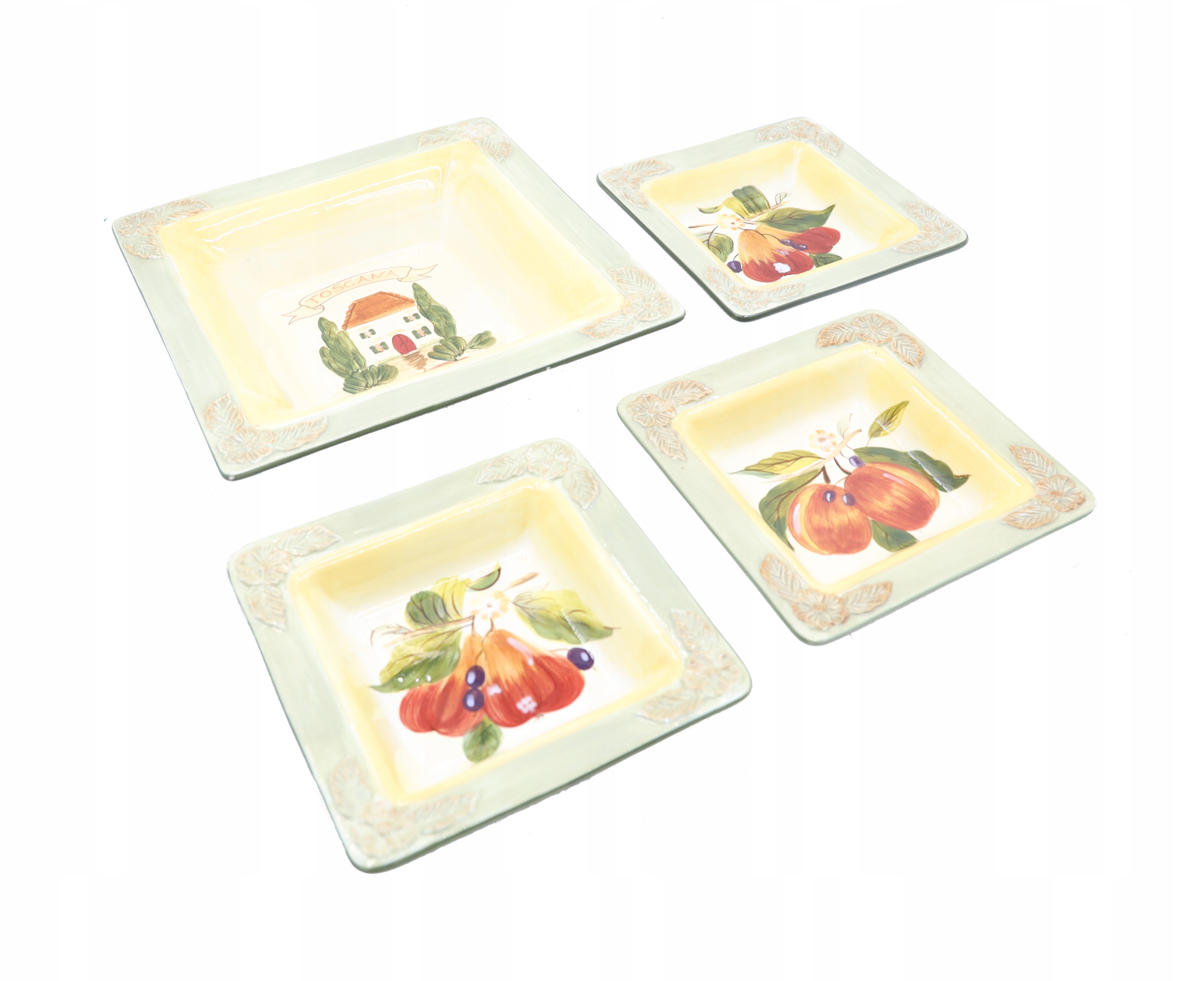 Набор декоративных квадратных блюд из сертифицированной международной коллекции "Тоскана". Подписанный. Ручная рука. Следы использования. Его можно использовать в микроволновой печи. Размеры; Большой 7 x 30,5 x 30,5 см, маленький 4,5 х 21,5 х 21,5 см. Я рекомендую