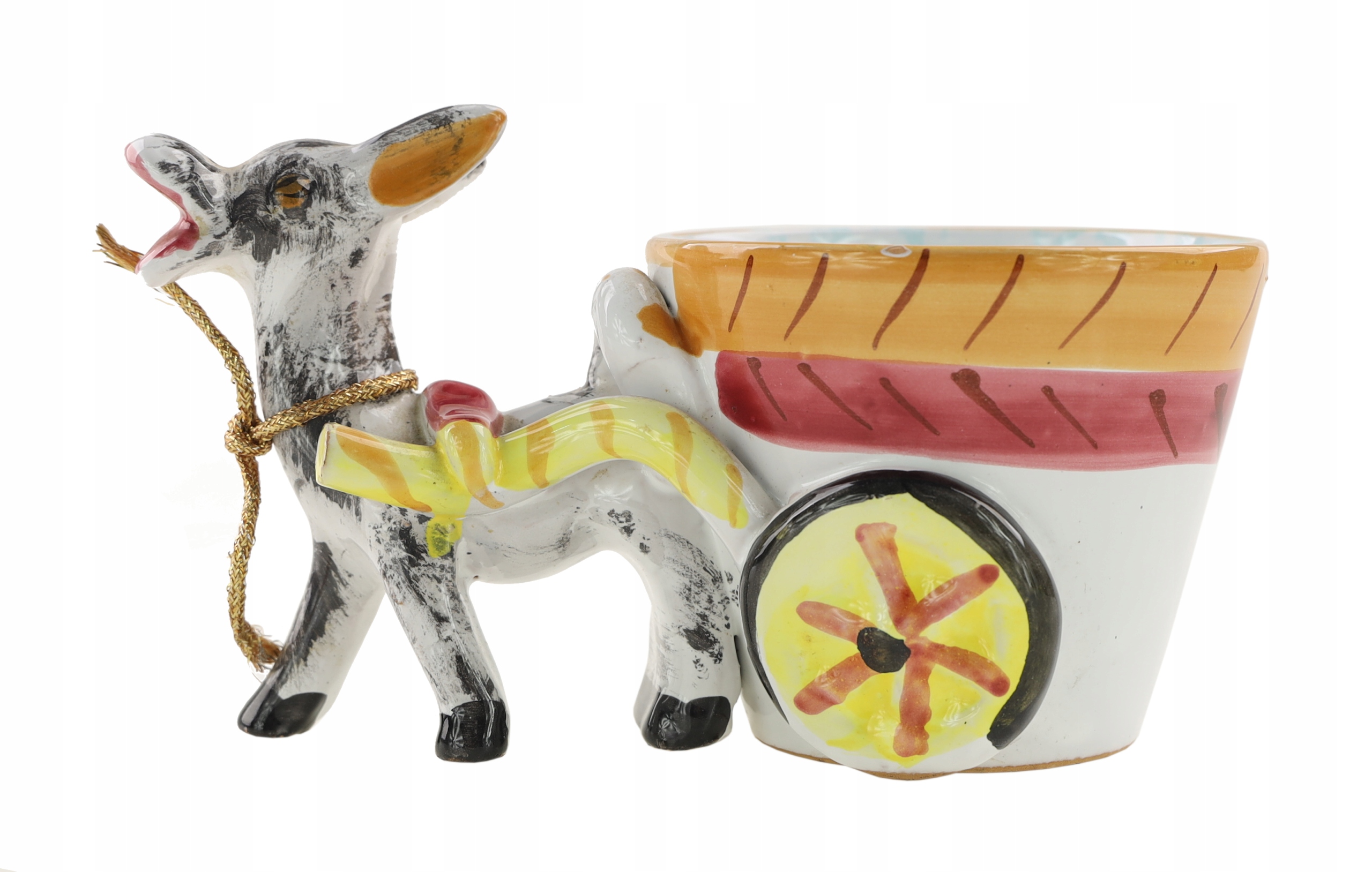 Керамическая фигурка-контейнер, изображающая осла, тянущего телегу. Ручной росписью. Размеры: высота 10 х 18,5 х 10 см. Рекомендую