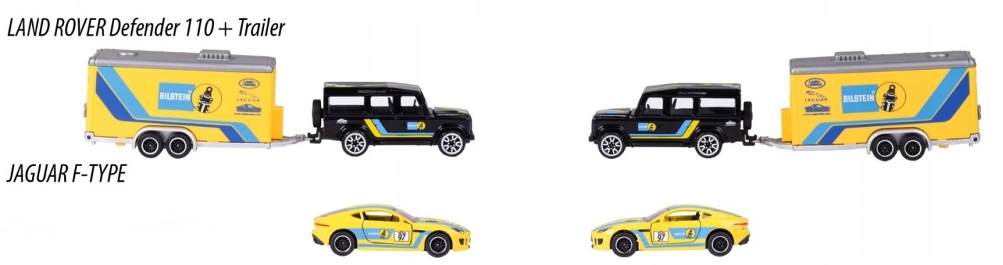 Majorette RACE TRAILER 212053111 Land Rover Defender 110 + Jaguar F-Type