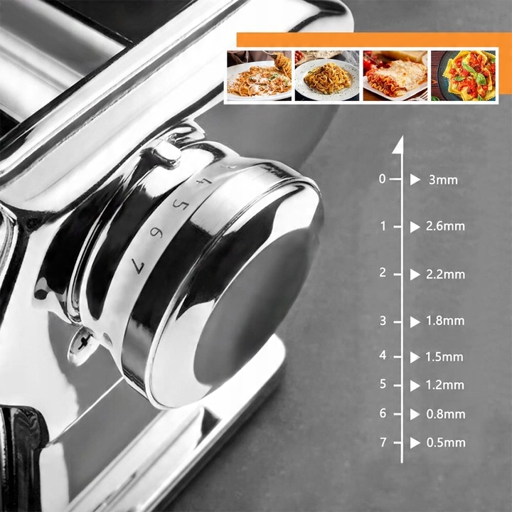 ✅Две ширины резки: Тестомес имеет 2 ширины резки: от 0,5 мм до 3 мм. Благодаря этому вы можете готовить разные виды макарон и теста, адаптируясь к собственным предпочтениям.
