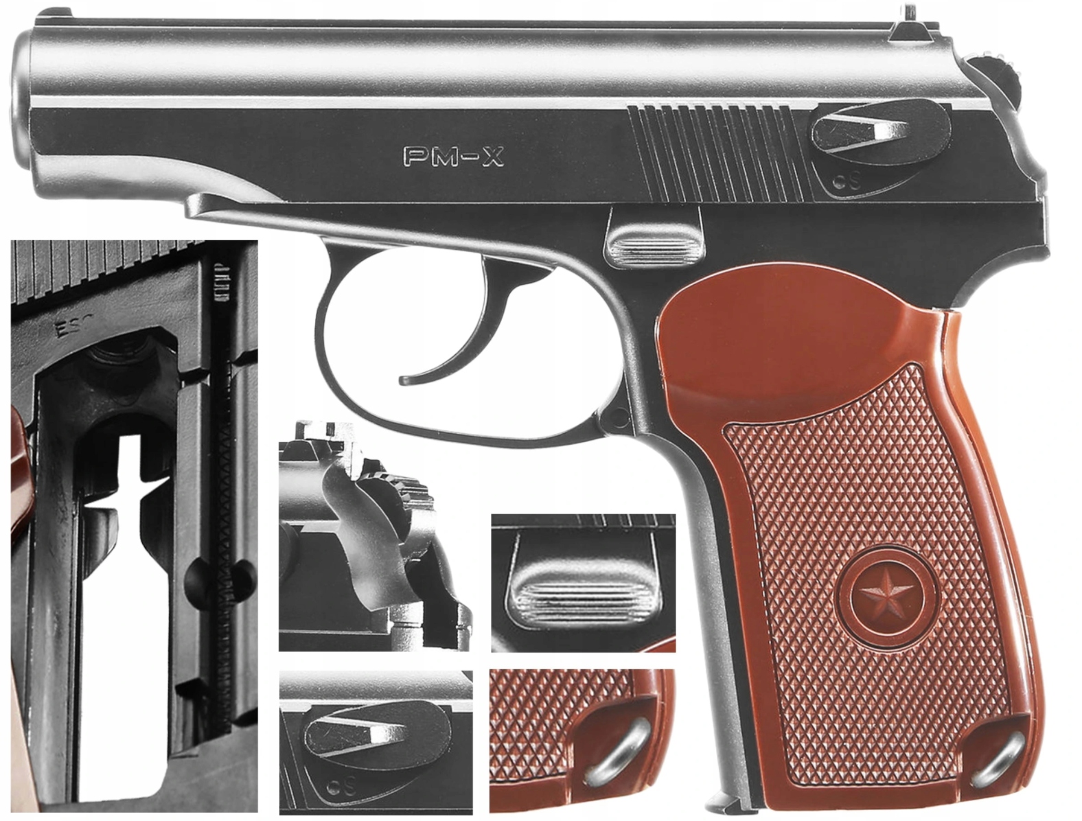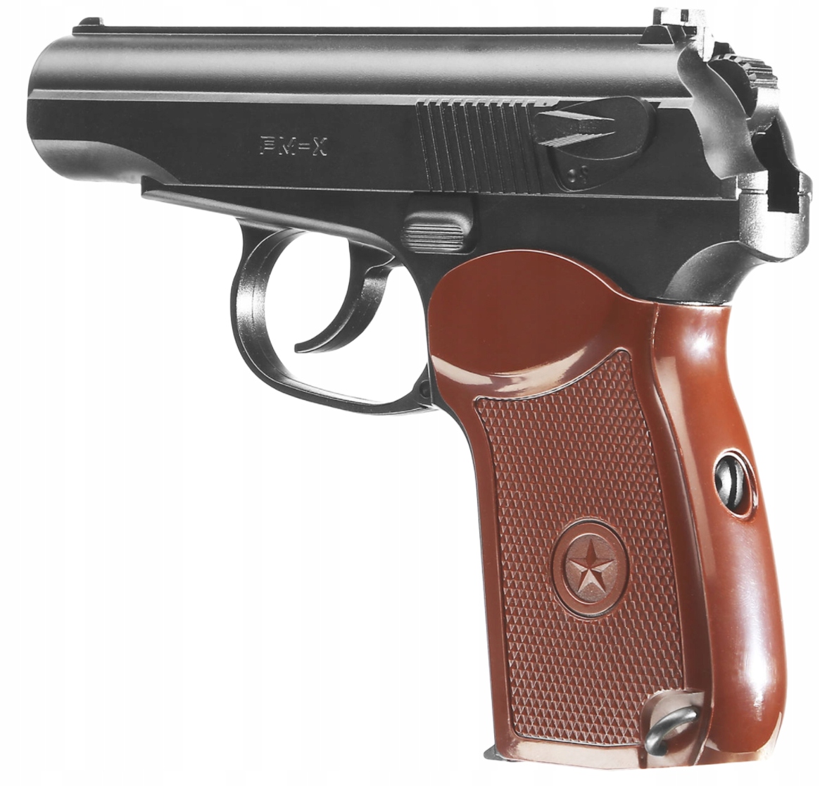Makarov-Horner Pm-X Kal. 4,5 мм bb h1> Борьба с PM-X 4,5 мм BB b> Это очень сильный пневматический пистолет, прикрепленный капсулами CO2. Обет, который был изготовлен из легкой полимерной структуры и металла. Этот пистолет является бюджетной копией легендарного пистолета Макаровой.