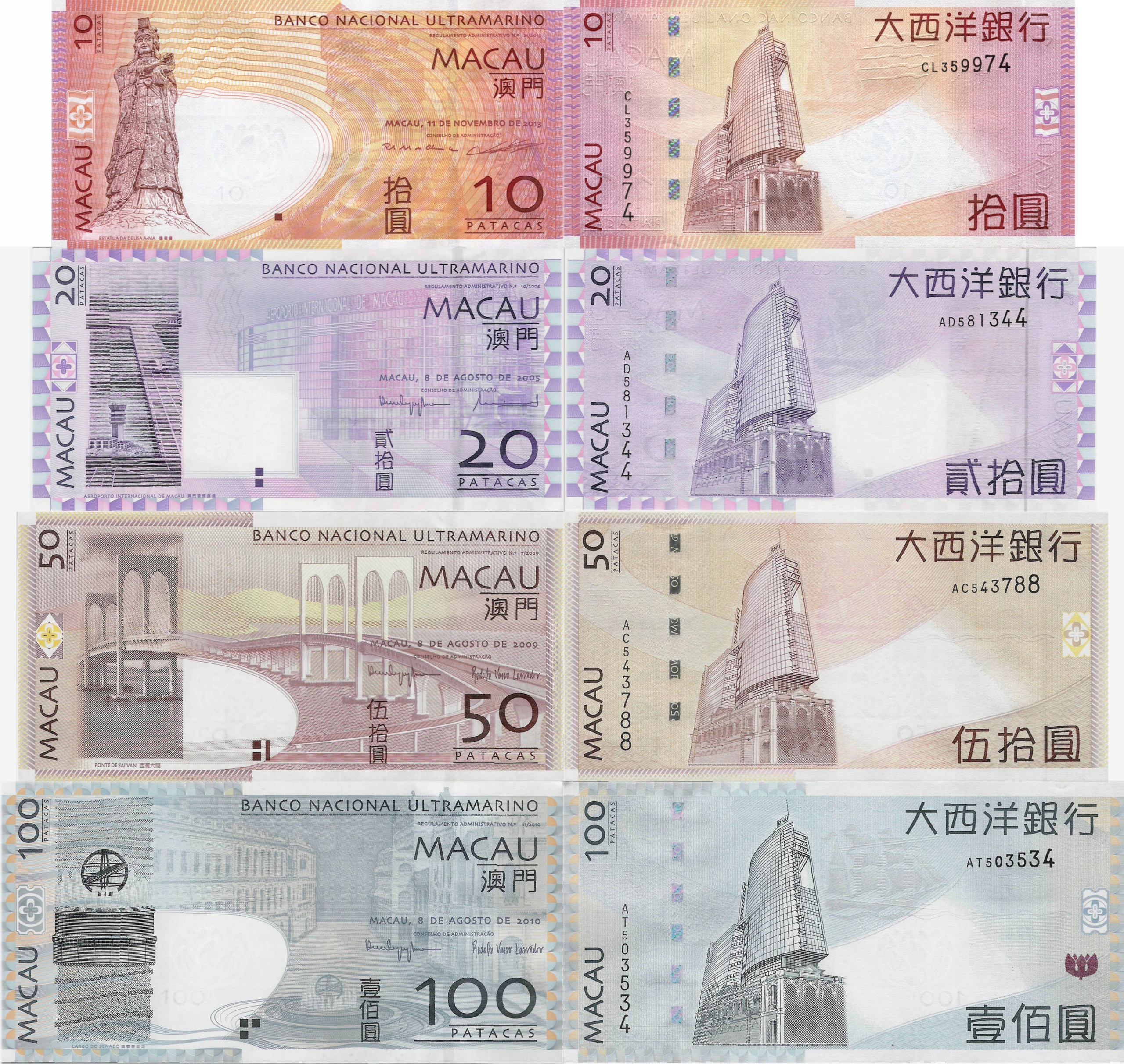 Makau zestaw 4 szt 10+20+50+100 Patacas - BNU Pick 80-81-81A-82 UNC