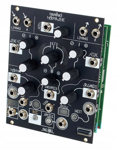 Make Noise Morphagene представляет собой модуль обработки звука и создан для воспроизведения магнитофонных записей магнитофонов, а кроме того, добавлено несколько цифровых функций, которые невозможно получить в классической катушке -катушечный магнитофон. Этот модуль также используется для так называемого гранулированный синтез. Он позволяет разделять звук на микрочасти и манипулировать им разными способами. Все можно синхронизировать с внешними часами, а большинство параметров управляются напряжением, что дает нам неограниченные возможности для создания звука. Мы можем сохранить всю нашу работу на карту micro SD и перенести ее на компьютер для дальнейшей обработки.