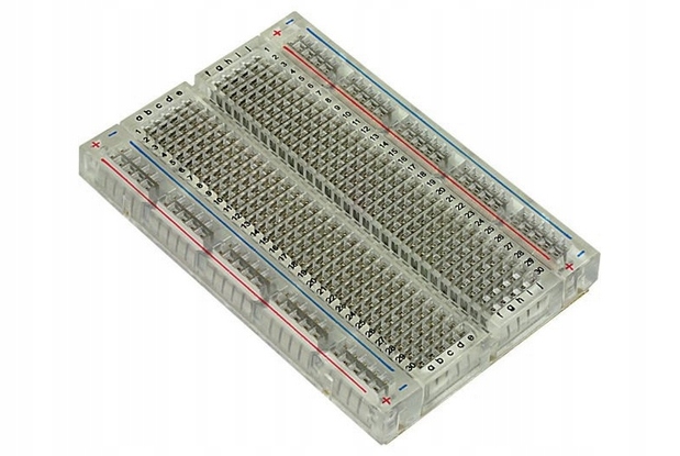 Представленная плата изготовлена из прозрачного пластика, имеет размеры 55мм на 82мм и содержит 400 контактных полей.