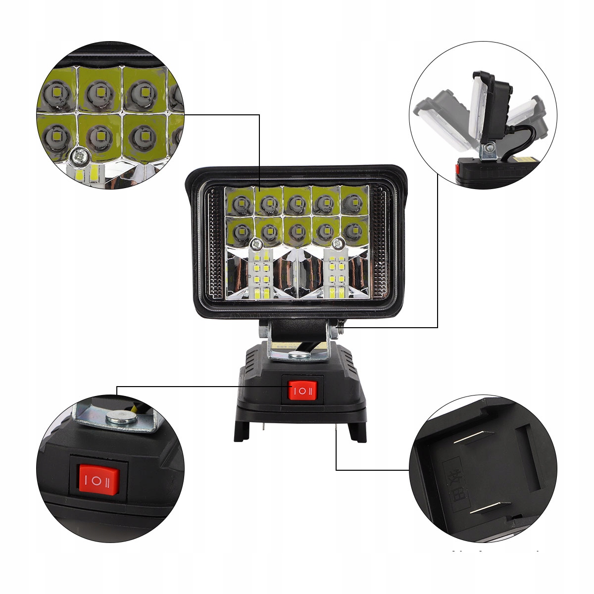 ➡ Способность с макита 18 В литий-ионных архитектурных фар для батарей для батарей идеально подходит для батареи Makita 18 V литий-ионных батарей, обеспечивая стабильную и надежную мощность. Вам больше не нужно беспокоиться о энергии батареи - наслаждайтесь эффективным освещением в любом месте и времени. Важно: батареи Makita не прикреплены!