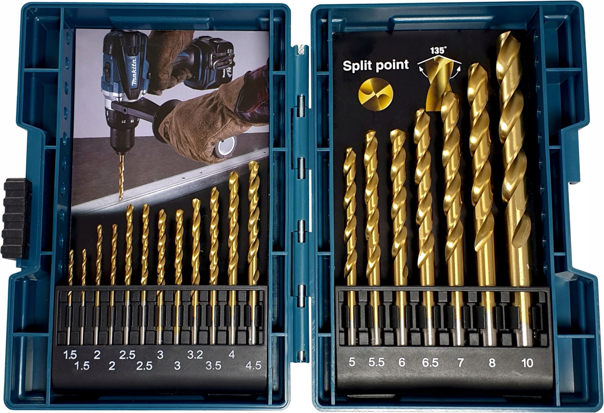 Makita 19-Element Drill с покрытием нитрида титана h1> в прочном чемодане с прозрачной системой сравнения! что они производят минимальные уровни трения и, таким образом, снижают отложения трения, сохраняя рабочее место в чистоте и порядок и без каких -либо повреждений или пятен. Конструкция HSS гарантирует, что эти тренировки подходят для легирования и нефискальной стали.