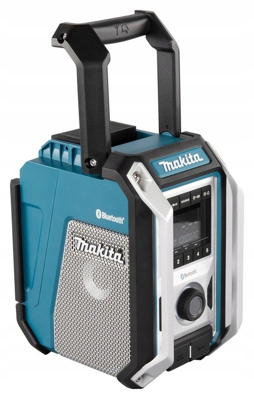 Радио DMR114 — надежное и мощное радио для прослушивания музыки на работе. Приемник имеет функцию радио и громкоговорителя. Имеется Bluetooth и AUX-соединение. Радио также оснащено USB-разъемом для зарядки мобильных устройств. Оснащена 2 высокочастотными динамиками сечением 63,5 мм и расположенным в нижней части НЧ-динамиком сечением 101,6 мм и усилителем с 7-ступенчатой шкалой, обеспечивающими превосходное звучание. Радио можно расположить под углом, чтобы получить более динамичное звучание. Питается от Li-Ion аккумуляторов 10,8В/12В макс, 14,4В и 18В, а также от сети. Полностью заряженный аккумулятор 18 В, 5,0 Ач обеспечивает 17 часов работы. Благодаря системе IP65 рация устойчива к пыли и небольшому дождю.