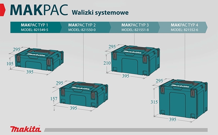 - Чемоданная система MAKPAC также подходит для других систем, например Festool, Hikoki, Hitachi и других.