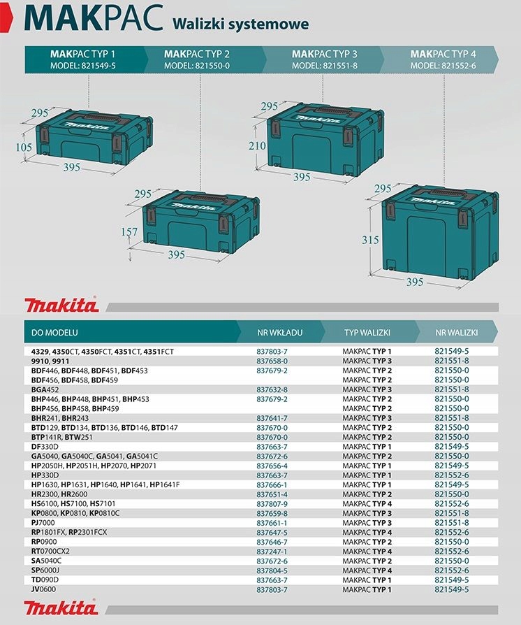 Оригинальный продукт Makita, из официального польского дистрибутора Makita Polska.